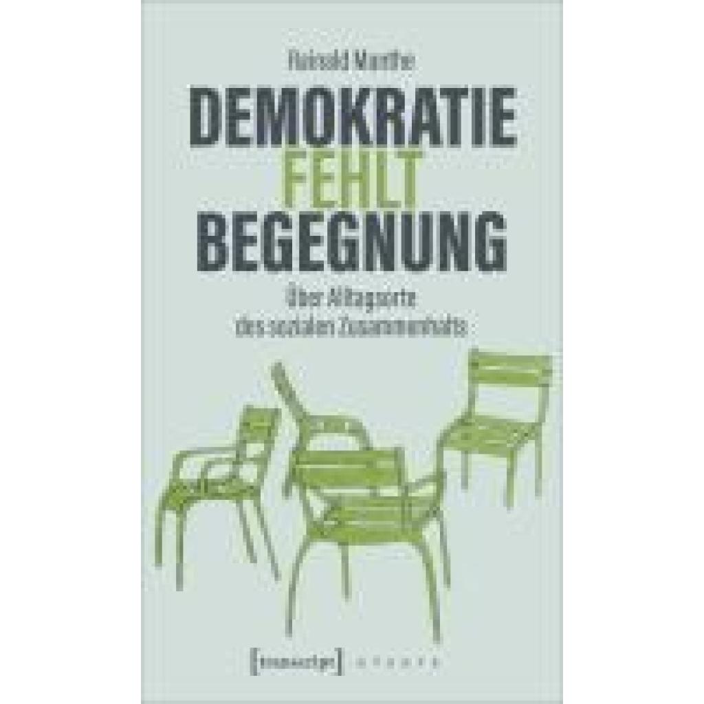 Demokratie fehlt Begegnung: Schwimmbäder, Jugendclubs, Bibliotheken oder Sportvereine werden weniger. Individuelle Freizeitgestaltung, digitale Medien und zuletzt die Coronapandemie haben vielen Begegnungsstätten den Rest gegeben. Aber Demokratie braucht Räume des Zusammentreffens, damit sie dauerhaft funktioniert. Rainald Manthe fokussiert auf solche Begegnungsorte des Alltags: Straßen und Bahnen, Parks und Cafés, die Dorfkneipe und Elternabende. Denn nur durch die Wahrnehmung von Diversität, durch die Bildung sozialer Beziehungen und durch gemeinsame Aktivitäten entsteht die unverzichtbare Basis, auf der moderne, vielfältige Demokratien funktionieren und sich den großen Transformationen unserer Zeit stellen können.