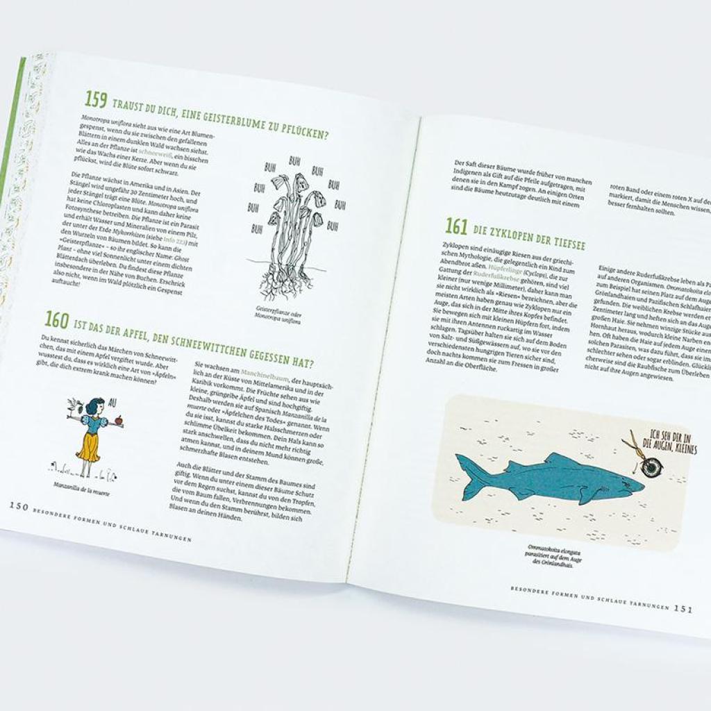So macht Biologie Spaß! Band 7 der 'Superschlaue Dinge'-Bestseller-Reihe von Mathilda Masters und Louize Perdieus feiert die Vielfalt und den Ideenreichtum der Natur. Ein Hoch auf den Einfallsreichtum der Natur! Die Welt der Tiere und Pflanzen steckt voller faszinierender Arten und genialer Ideen: Weißt du, woher der Drachenblutbaum seinen Namen hat? Oder dass es Pflanzen gibt, die zehn Jahre ohne Wasser auskommen, und Quallen, die als unsterblich gelten? Und hast du schon einmal von 'Octopolis' gehört, der Stadt der Kraken? Für den neuen Band in ihrer erfolgreichen "Superschlaue Dinge"-Reihe begeben sich Mathilda Masters und Louize Perdieus ins Reich von Flora und Fauna und versammeln 321 Fakten rund um beeindruckende Biotope, clevere Tricks und Tarnungen, erstaunliche Formen des Zusammenlebens und vieles mehr. Eine wahre Feier der Wunder unserer Natur.