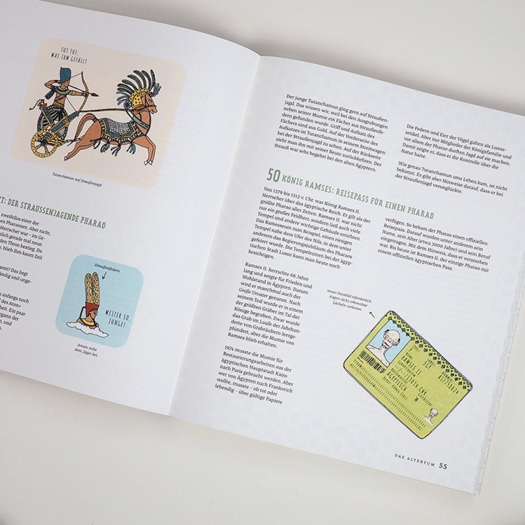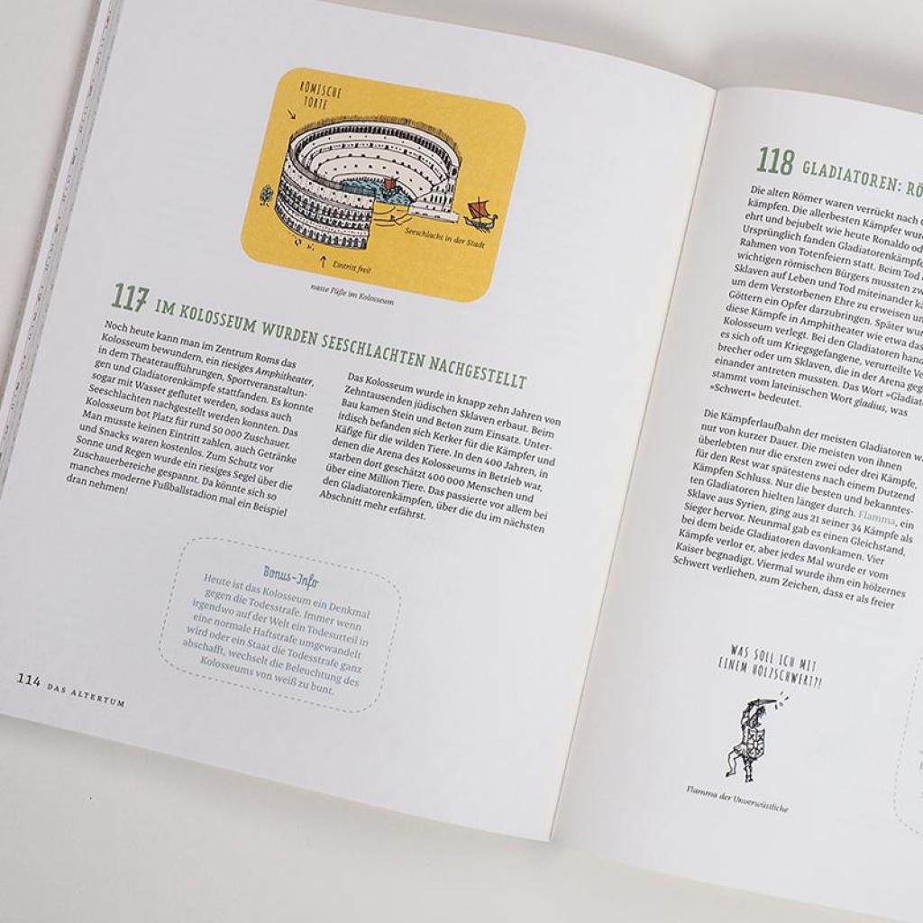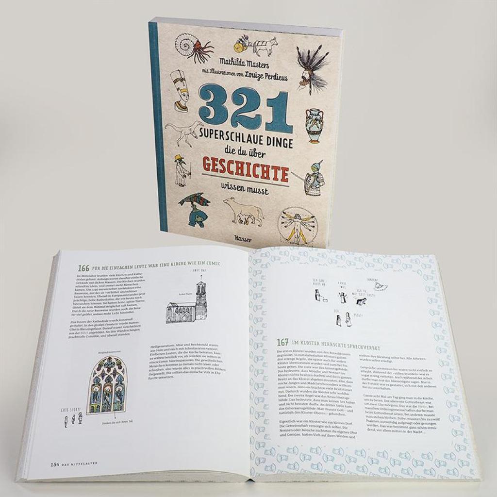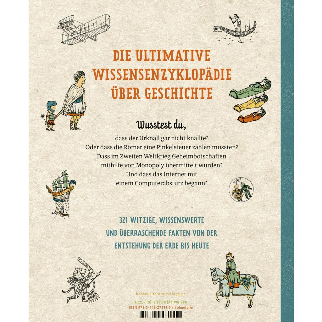 Band 4 der "Superschlaue Dinge"-Bestseller-Reihe von Mathilda Masters und Louzie Perdieus beweist: Geschichte ist alles andere als verstaubt! Der neue Band in der erfolgreichen "321 superschlaue Dinge"-Reihe nimmt mit auf eine spannende Reise von den Urmenschen bis heute. Wusstest du, dass die Perser schon im Jahr 400 v. Chr. die Kühltruhe erfanden? Oder dass das Kolosseum in Rom mit Wasser gefüllt werden konnte, um Seeschlachten nachzuspielen? Vielleicht hast du schon von Hofnarren im Mittelalter gehört, aber gab es auch Närrinnen? Hier erfährst du, ob Napoleon wirklich so klein war, welches Lebewesen zuerst in den Weltraum reiste, wie das Internet entstanden ist und vieles mehr! 321 witzige, wissenswerte und verblüffende Fakten rund um Urzeit, Altertum, Mittelalter und Neuzeit beweisen: Geschichte ist alles andere als angestaubt.