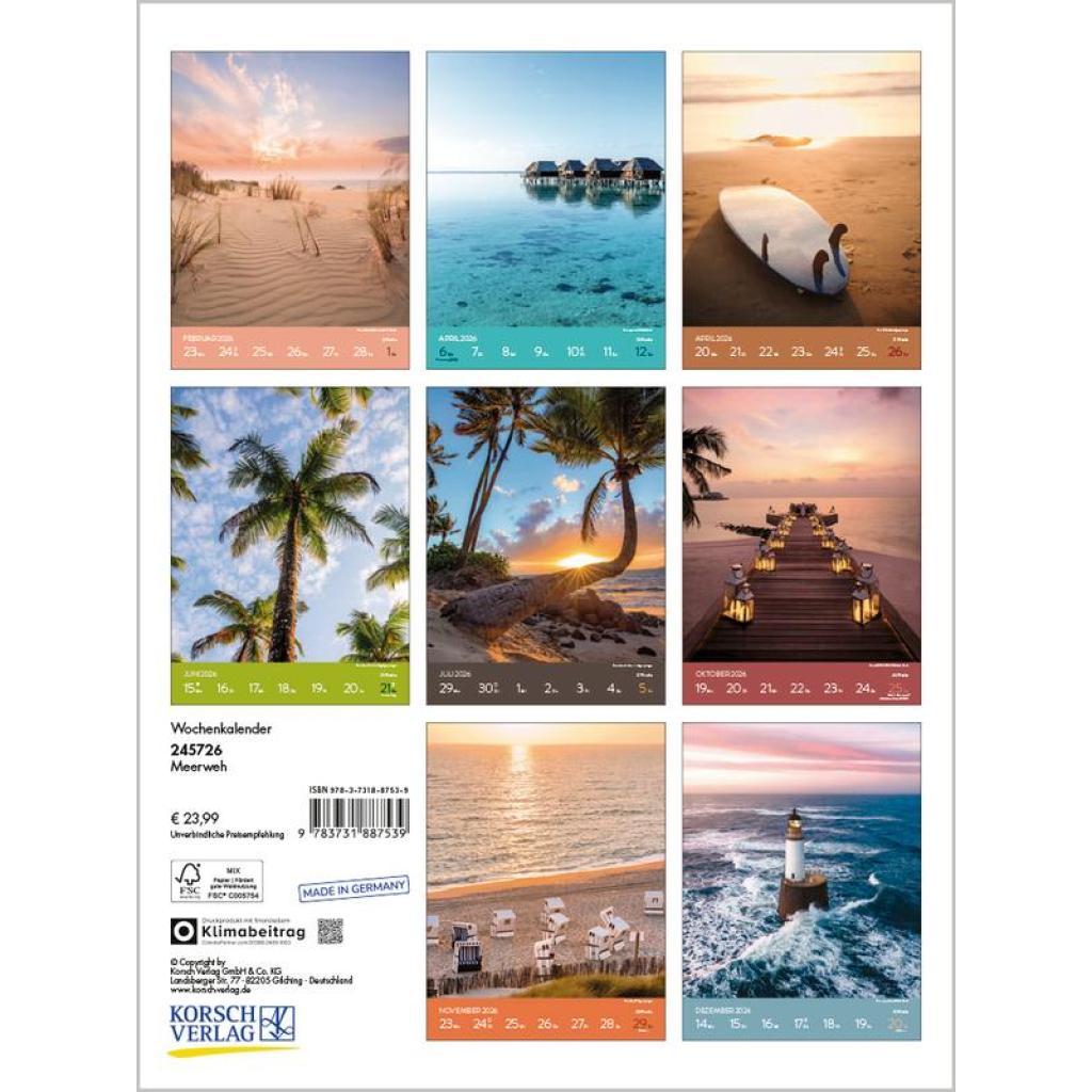 Produktmerkmale ¿ Format: 24 x 32 cm; Wochenkalender mit 53 einzigartigen Bildern ¿ Kalendarium auf Deutsch mit hervorgehobenen Sonn- und Feiertagen für D, A und CH ¿ Gedruckt auf umweltfreundlichem FSC Papier Das Gefühl von einem Tag am Meer bringt dieser Kalender nach Hause an die Wand. Neben schönen Strandaufnahmen finden sich auch Fotografien von Muscheln, Booten und anderen Stranddetails. Der perfekte Kalender für alle, die unter chronischem Meerweh leiden. Klimaneutral hergestellt auf nachhaltig produziertem Papier.