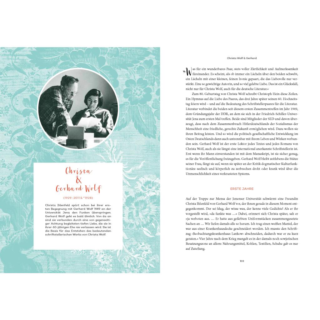 »Du kannst alles mit einem Mann haben: Toleranz, Respekt, Erotik, Sexualität, Vernunft - ohne Glück funktioniert die beste Ehe nicht. Unser Glück ist geprüft. Uns ist nichts in den Schoß gefallen. Und - man muss auch wollen, dass eine Ehe funktioniert.« Senta Berger Geschichten von Seelenverwandtschaft & Zweisamkeit Gemeinsam im Geiste, im royalen Flair oder an der Seite der Macht: Antonia Meiners zeichnet einfühlsam und kenntnisreich einzigartige Liebesgeschichten von Paaren nach, die einander innig und lange lieben. Liebe, die ein Leben lang hält - alle träumen davon, nur wenigen ist sie vergönnt. Und doch hört man immer wieder von Paaren, denen dieses Glück gelungen ist. Ab der ersten Zigarette wie bei Helmut Schmidt und Loki, nach arrangierter Hochzeit im Falle von Friedrich Wilhelm III. von Preußen und Königin Luise, vereint durch gemeinsames Engagement wie Gertrude Stein & Alice B. Toklas, eins im Schreiben bei Paul Auster und Siri Hustvedt oder magisch-romantisch wie bei Hans Arp und Sophie Taeuber. Wie lange Liebe gelingt? In diesem Buch wird es erzählt. Mit Porträts von Winston Churchill & Clementine, Christa & Gerhard Wolf, Gertrude Stein & Alice B. Toklas, Hans Arp & Sophie Taeuber, Senta Berger & Michael Verhoeven, u.v.m.