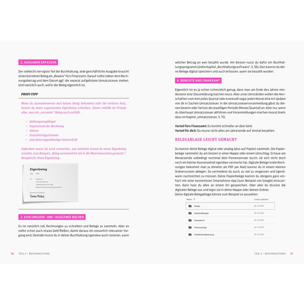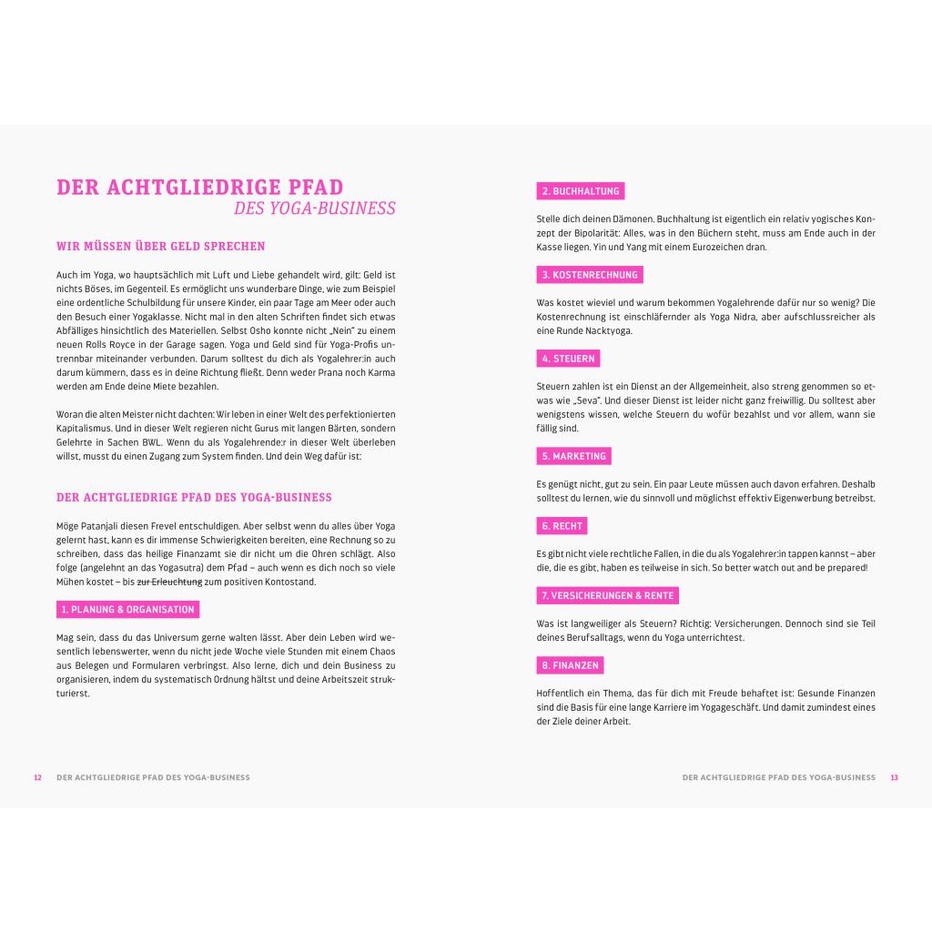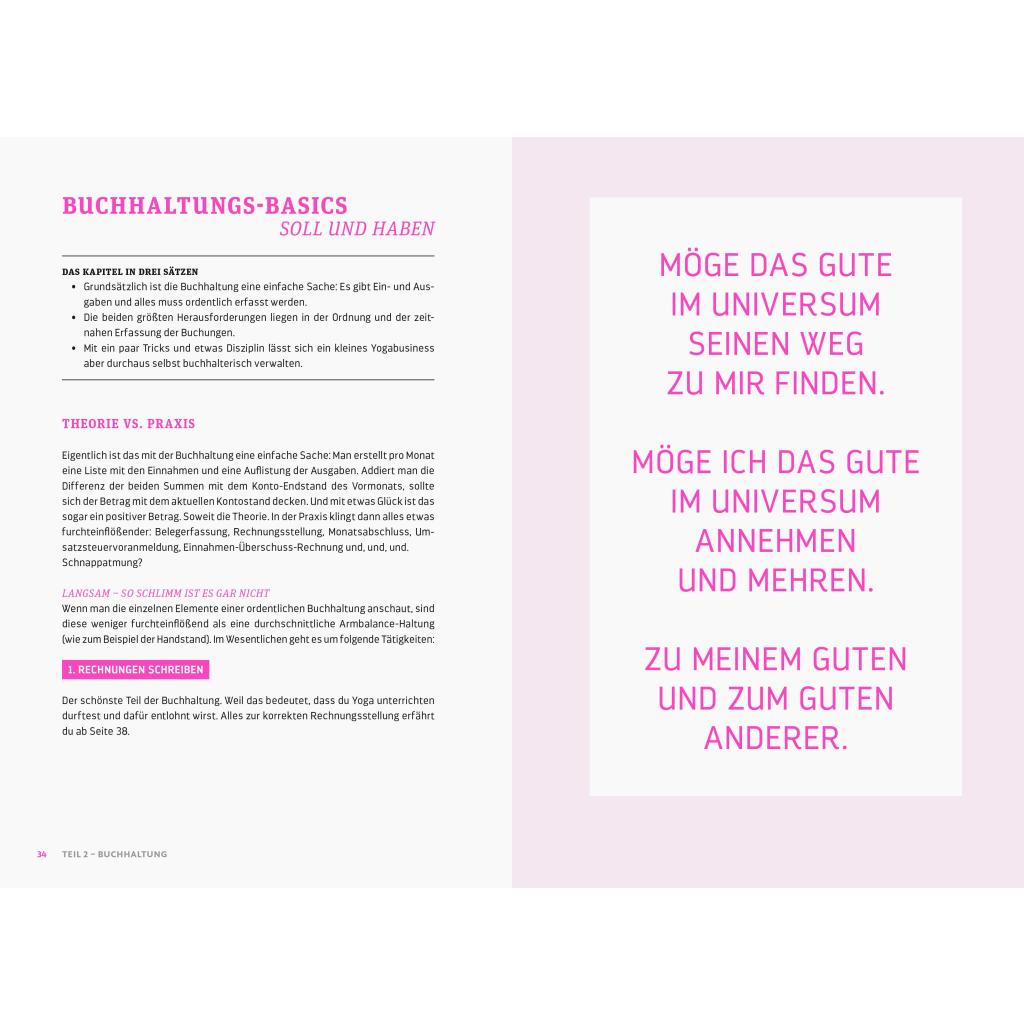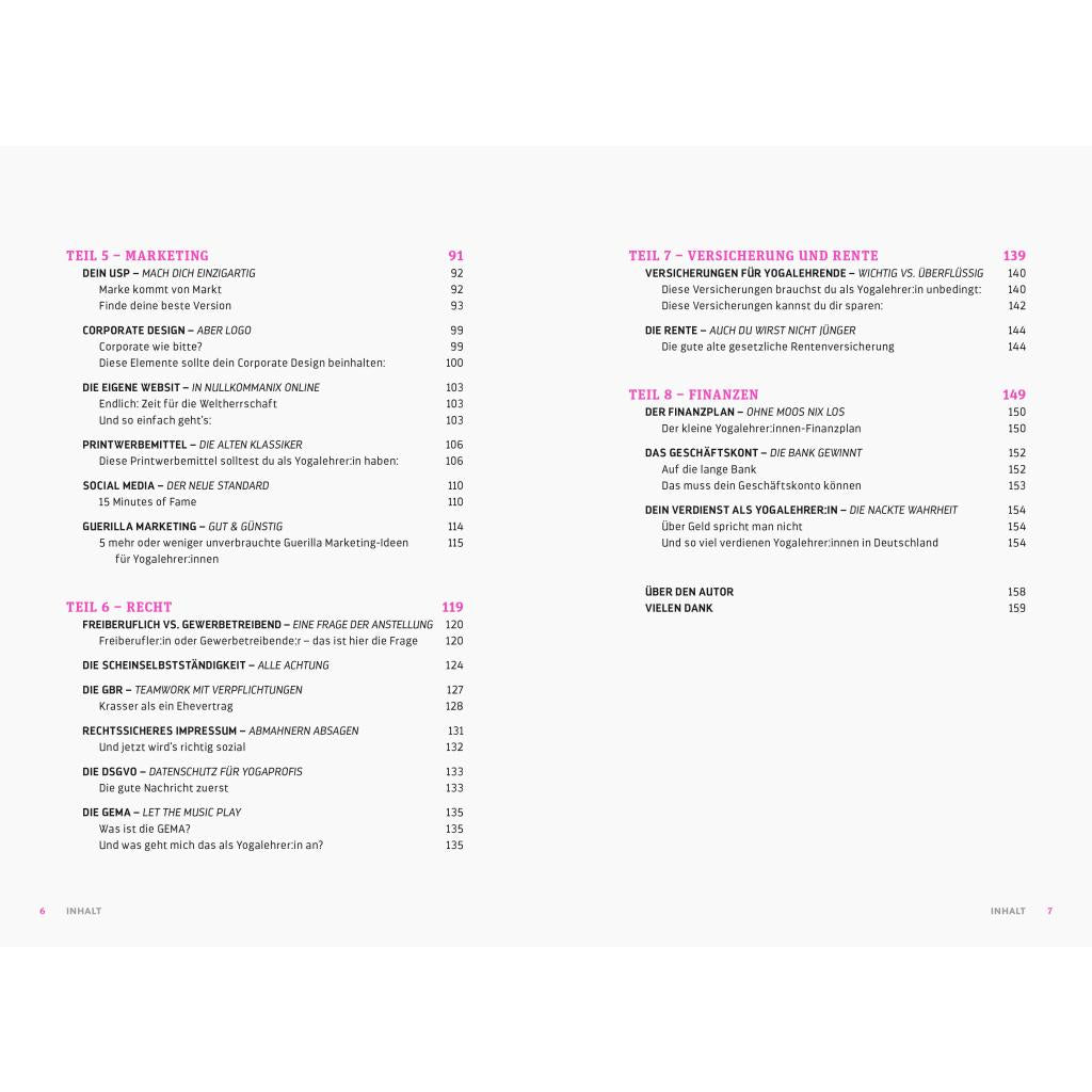 Gründercoaching für Yogis: So startest du erfolgreich in dein Yoga-Business In der Yogalehrer-Ausbildung wird über Geld nur wenig gesprochen. Aber selbst der beste Guru kann nicht von Luft und Yogaliebe leben. Thomas Meinhoff alias 'Yogadude' gibt in diesem Business-Ratgeber einen kompakten Überblick über alles, was du für deine Selbstständigkeit als Yogalehrer oder Yogalehrerin wissen musst. Von der Gründung über ordnungsgemäße Buchführung bis hin zu Marketing und rechtlichen Fragen werden alle Themen leicht verständlich und humorvoll beschrieben. So machen betriebswirtschaftliche Grundlagen selbst dem größten Zahlenmuffel Spaß.Das kleine 1x1 des Yoga-Business: Alles, was du für deine Existenzgründung wissen musst Die wichtigsten BWL-Grundlagen einfach erklärt: Rechnungen schreiben, Umsatzsteuer berechnen, Steuererklärung meistern und mehr Selbstständig werden mit Plan und guter Organisation: Wie du den perfekten Businessplan erstellst und deine Arbeitszeit bestmöglich nutzt Erfolgreiches Marketing für Yogipreneure: So machst du Werbung für Yogakurse, die wirklich etwas bringt Umfassender Crashkurs für Quereinsteiger:innen und übersichtliches Nachschlagewerk für Erfahrene - praxisorientiert und humorvoll geschrieben Vom Hobby zum Beruf: Souverän selbstständig als Yogalehrer und Yogalehrerin Lohnt sich die Anmeldung als Kleinunternehmer? Was ist eine Einnahmen-Überschuss-Rechnung? Und wie funktioniert die Umsatzsteuer-Voranmeldung? Wenn du als Yogalehrer:in langfristig Geld verdienen möchtest, führt an den Grundlagen der BWL kein Weg vorbei. Mit kurzen Kapiteln und sofort anwendbaren Inhalten wendet sich dieses Buch speziell an diejenigen, die keine Lust oder Zeit haben, sich tiefgehend mit Zahlen und Anträgen auseinanderzusetzen. Verständliche Anleitungen, praktische Ausfüllhilfen für Formulare und zahlreiche Profitipps helfen dir dabei, dich ganz auf deinen Traum vom eigenen Yogastudio zu konzentrieren!