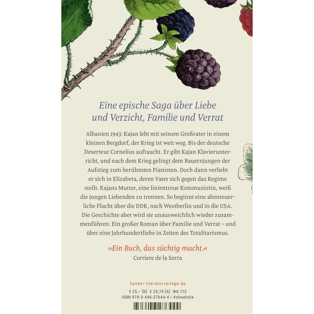 | Keyword: | 20. Jahrhundert; Albanien; Berlin; Bestseller; Eiserner Vorhang; Familiengeschichte; Flucht; Kommunismus; Krieg; Liebesgeschichte; Mauer; Musik; Osteuropa; Pageturner; Schicksal; Schmöker; Verrat; Zweiter Weltkrieg; eskapistisch; historisch |