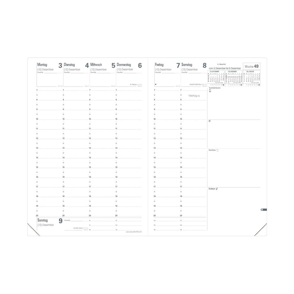 Quo Vadis - Terminkalender - 2026 - Minister - Die Woche Planning - Deutsch - Calypso - Beige - Dez/Dez - 16x24 cm - Clairefontaine-Papier Weiß - Hergestellt in Frankreich Wochenkalender mit einer doppelseitigen Übersicht Wochenübersicht - die ganze Woche auf einen Blick Enthält auf jeder Doppelseite einen freien Bereich zum Notieren wichtiger Informationen (zu kontaktierende Personen, zu erledigende Dinge usw.) Papier Clairefontaine, weiß, für ein glattes und flüssiges Schreibgefühl, perforierte abreißbare Ecken für eine einfache Orientierung Abnehmbarer Einband mit Klappe in Festonform für eine elegante Silhouette Praktisches Öffnen/Schließen durch integrierte Magnete