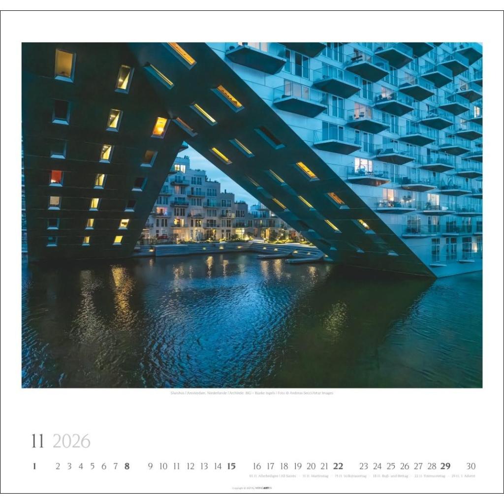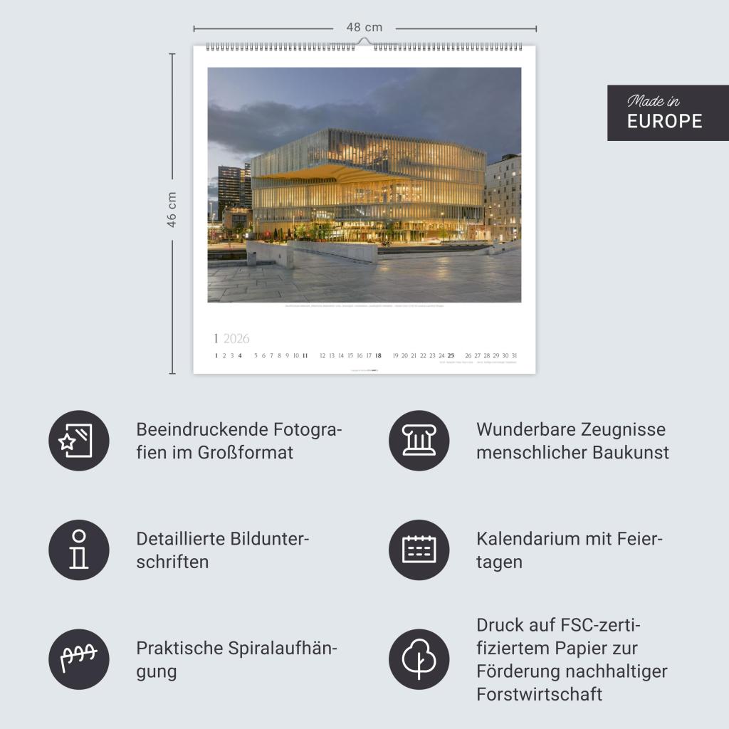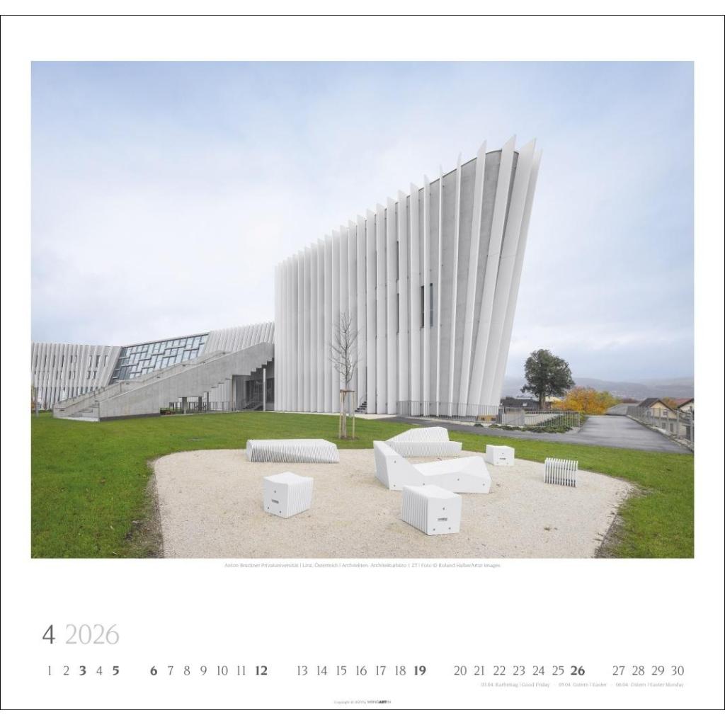 Großer Wandkalender 48 x 46 cm mit Monatskalendarium. Zeitgenössischer Architektur-Kalender mit fazinierenden Aufnahmen moderner Bauwerke.