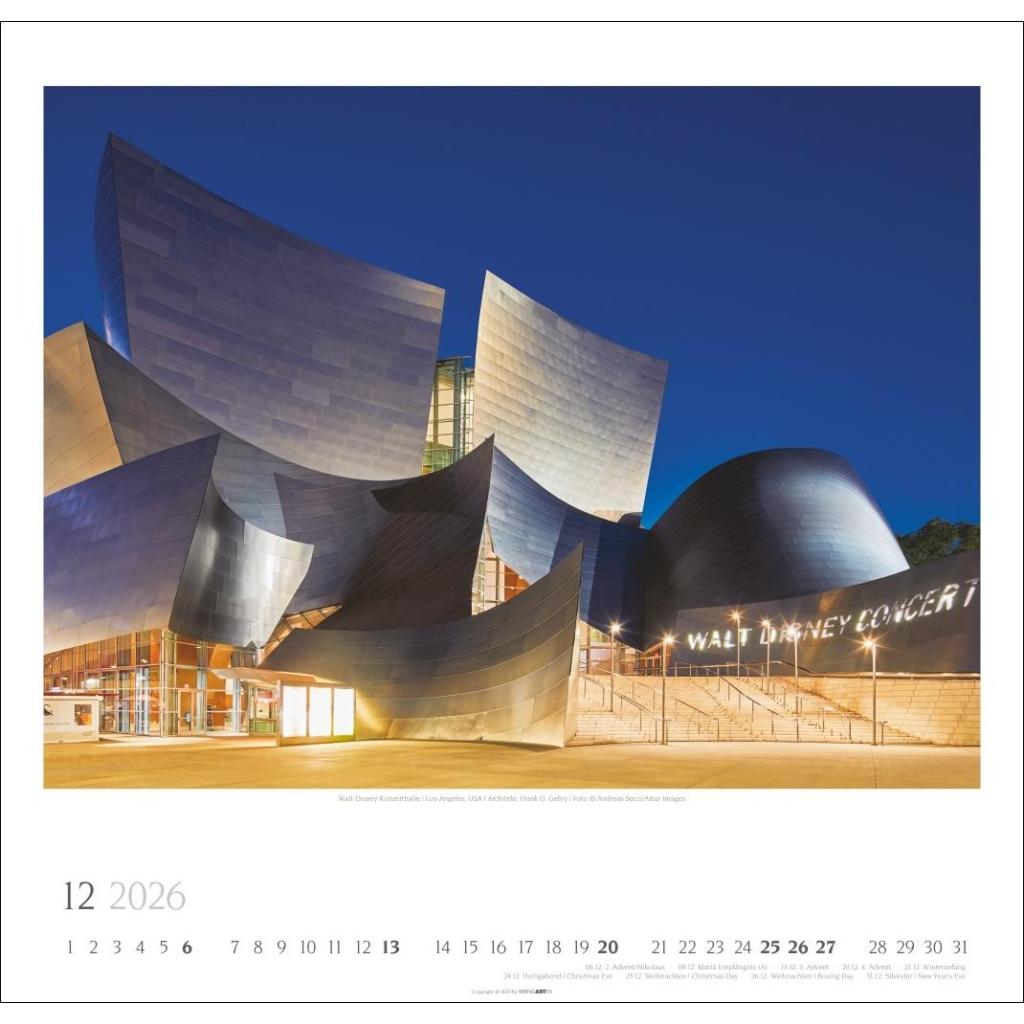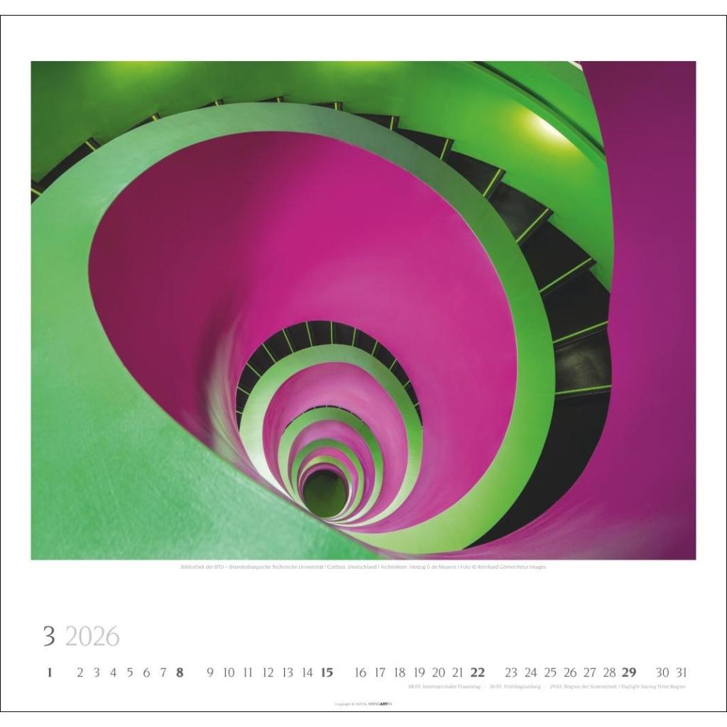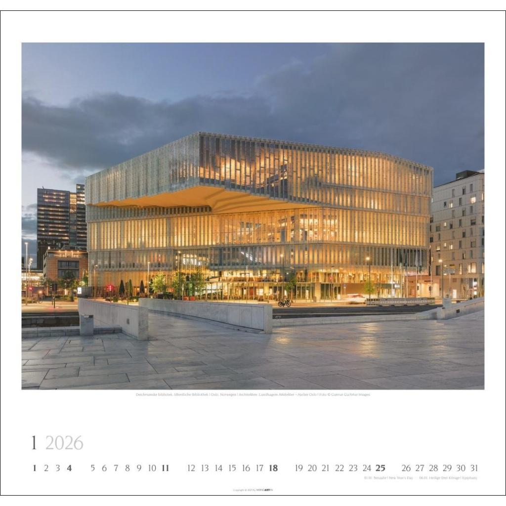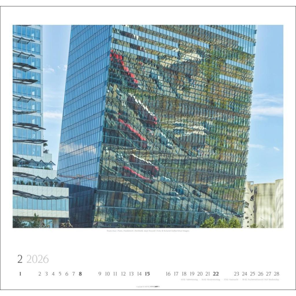 Großer Wandkalender 48 x 46 cm mit Monatskalendarium. Zeitgenössischer Architektur-Kalender mit fazinierenden Aufnahmen moderner Bauwerke.