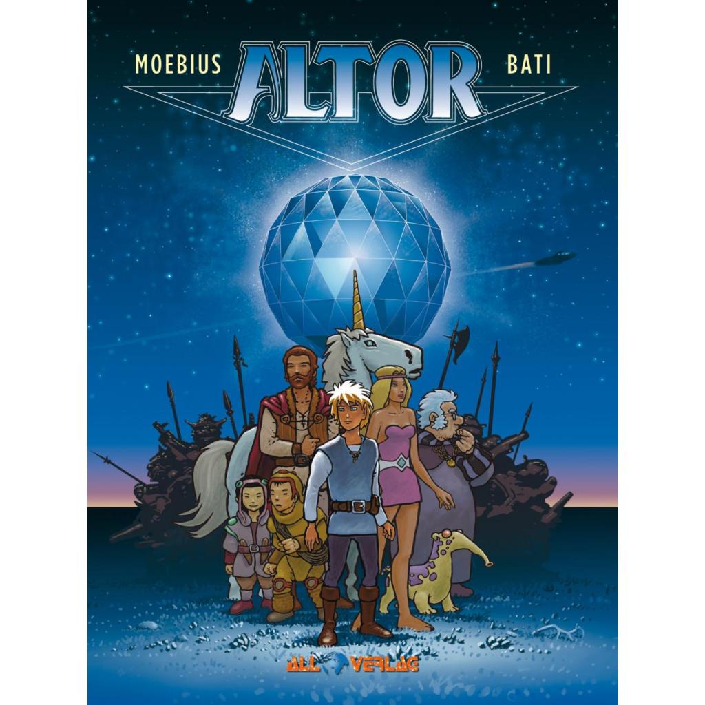 Das Fantasy-Highlight aus der Feder von Comic-Legende Moebius!Das Aufeinandertreffen des Comiczeichners Marc Bati mit Jean Giraud alias Moebius im Jahr 1982 markiert einen Meilenstein im Bereich der Fantasycomics. Nach ersten gemeinsamen Arbeiten setzte Bati in den Jahren 1986-1990 die Trilogie Le Cristal majeur (dt. Der große Kristall) nach Szenarien von Giraud grafisch um. Ab 1992 folgten dann vier weitere Alben unter dem Titel Altor, der dem Namen der Hauptfigur der Serie geschuldet ist, und zum endgültigen Reihentitel wurde.Die Handlung spielt auf Terra Nova, einer Welt, die in mancher Hinsicht dem Planeten Erde ähnelt, aber in Wirklichkeit die Zukunft unseres Himmelskörpers darstellt. Vorläufig befindet sich diese neue Erde in einer Art Mittelalter, in dem Ritter, Fürsten, Trolle und Elfen leben und in dem hochmoderne Waffen und Magie die eher rustikalen Waffen ersetzen. In dieser paradoxen Welt stiftet eine schwarze Fee - auch schwarzer Stern genannt - Verwüstung und Leid. Sie stahl den großen Kristall, das energetische Herzstück einer Kette magischer Kristalle, die den Ansturm böser Mächte aufhalten sollten. Im Dienst der galaktischen Konföderation tritt Altor, ein Elf von Terra Nova, die Suche nach dem großen Kristall an. Auf seiner gefährlichen Mission bereist er fremde und wundervolle Welten...