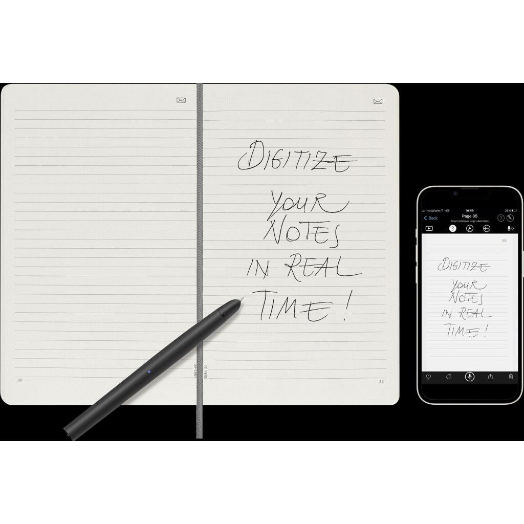 Die Evolution des legendären Notizbuchs. Das Smart Notizbuch ist ein ablenkungsfreier Ort, an dem Sie Inspirationen festhalten und Ideen ausarbeiten können. Setzen Sie den Smart Pen einfach auf das Papier und erkunden Sie jede Idee bis ins Detail. Mit unsichtbaren Ncodes auf jeder Seite erkennt der Smart Pen die genaue Position im Notizbuch und erstellt eine identische digitale Version Ihrer Notizen auf dem Bildschirm, die Sie dann bearbeiten, erweitern und digital teilen können.