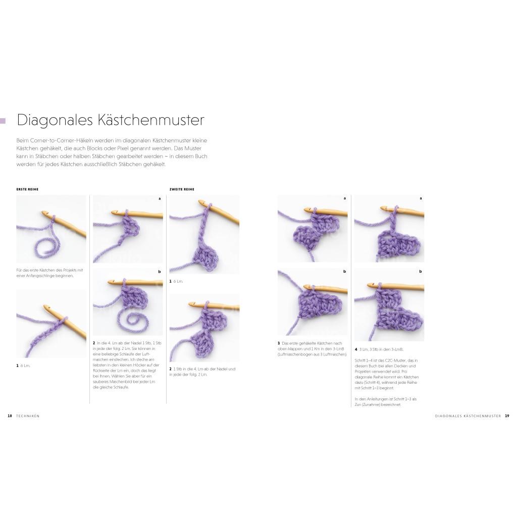 Kreative Designs ganz einfach von einer Ecke zur anderen häkeln. Kreatives Häkelbuch für C2C Häkeln und Decken häkeln mir farbenfrohen Häkelmuster Anleitungen.