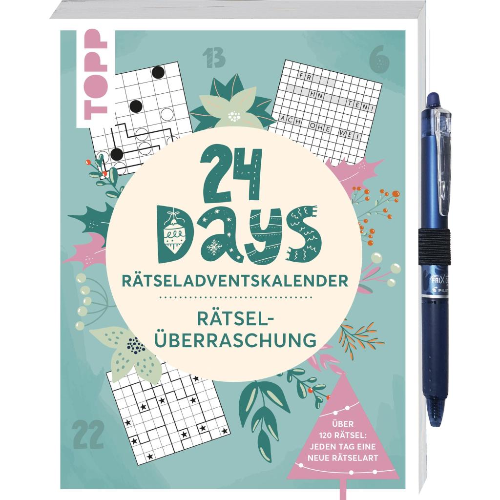 Bist du in diesem Jahr bereit für eine Rätselherausforderung der besonderen Art? Hier erwarten dich 24 handverlesene Rätselarten, die du wahrscheinlich noch nie gesehen hast! Jeden Tag lernst du eine neue Rätselart kennen und kannst dich mit dem beigefügten Stift direkt an die Lösung machen. Von entspannend bis knifflig, bei über 150 Rätseln ist alles dabei. Kannst du alle Rätsel lösen? Das erwartet dich: Rätseladventskalender wundervolle Reise durch die Welt der außergewöhnlichen Rätsel 24 unbekannte Rätselarten über 150 Rätsel inklusive Lösungen inklusive radierbarem Tintenroller "FriXion Clicker" von PILOT zum sofort losrätsen! ideales Geschenk für alle Fans von Sudoku und Kreuzworträtseln