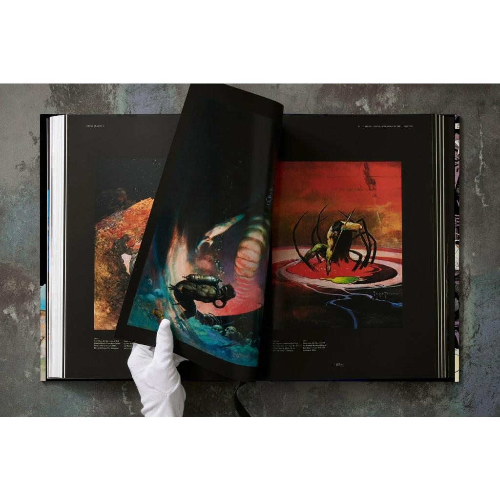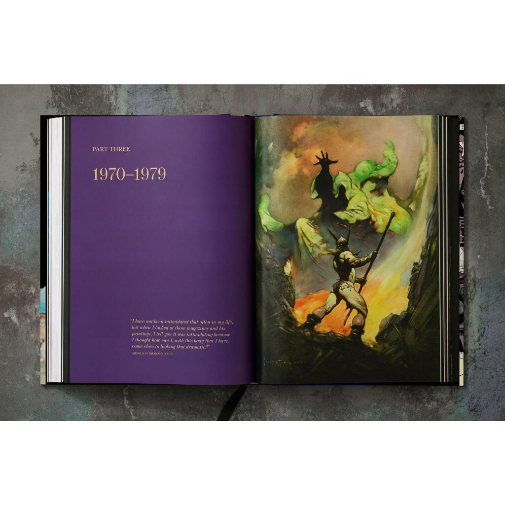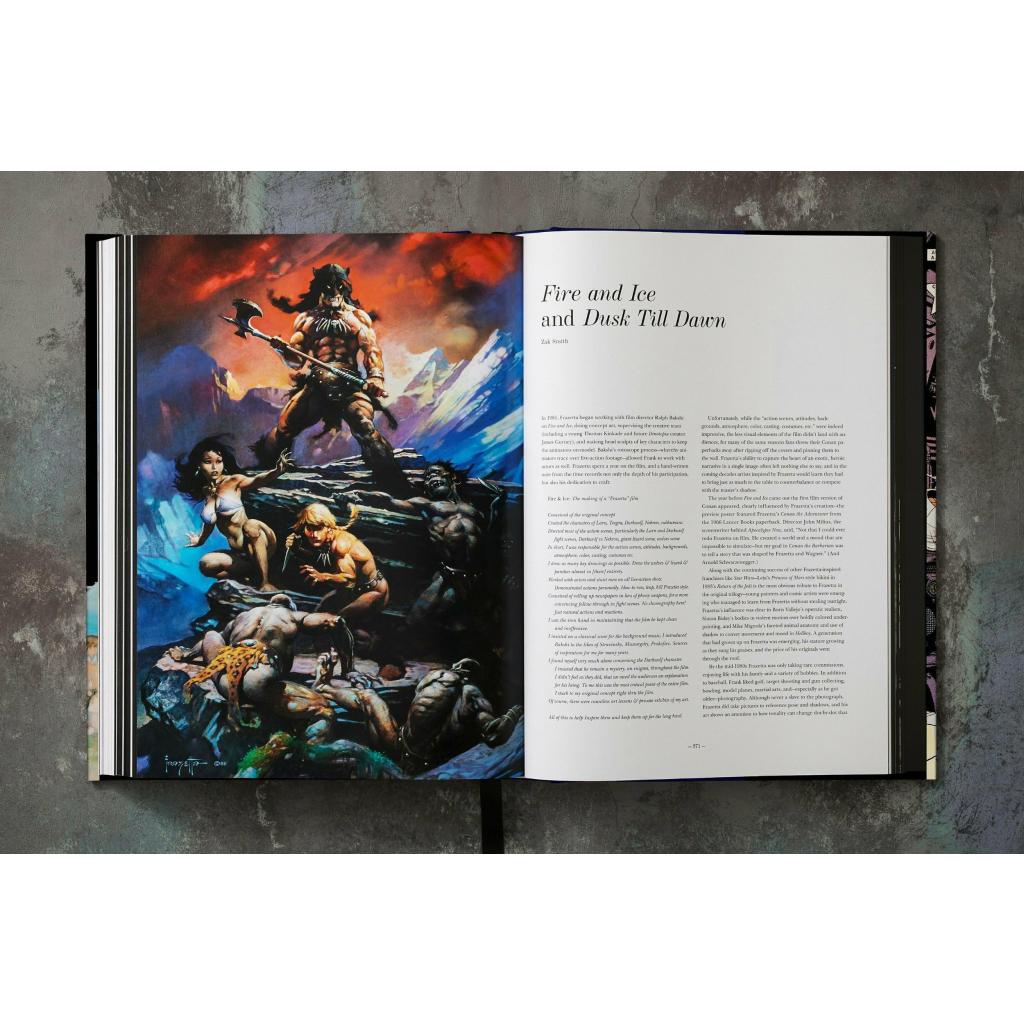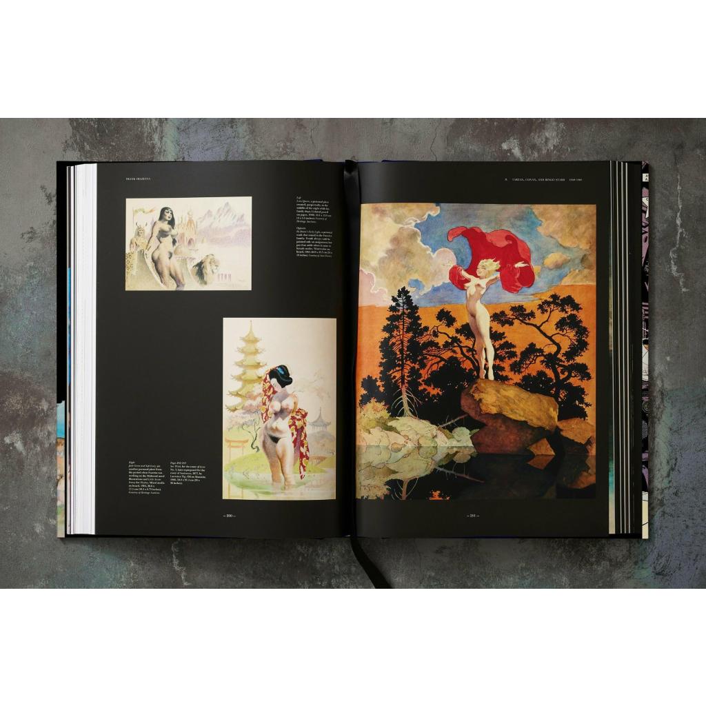 Frank Frazetta ist seit 50 Jahren der unangefochtene Meister der Fantasy-Kunst, und sein Ruhm ist in den 12 Jahren seit seinem Tod stetig gewachsen. Seine Gemälde brechen mittlerweile Auktionsrekorde: Sein Werk Egyptian Queen wurde gerade für 5,4 Millionen US-Dollar verkauft . Auch deshalb war es höchste Zeit, diese ultimative Monografie über ihn zu produzieren. Frank Frazetta wurde 1928 als Sohn einer sizilianischen Familie in Brooklyn geboren. Er war Profi-Baseballer in der amerikanischen Liga, Kleinkrimineller und notorischer Verführer mit dem Aussehen eines Filmstars und außergewöhnlichen Begabungen. Er behauptete, nur dann sich der Kunst zu widmen, wenn es nichts Besseres zu tun gab - lieber spielte er Baseball - und begann seine Karriere als professioneller Comiczeichner doch schon im Alter von 16 Jahren. Seine Auftragsarbeiten führten ihn zu den berüchtigten EC Comics , dann zu den Ölgemälden für die Tarzan- und die Conan-Serie . Beide Charaktere wurden schon von vielen vor ihm dargestellt, aber, wie er in den 1970er-Jahren erklärte: "Ich bin sehr körperfixiert. In Brooklyn kannte ich Conan, ich kannte Typen, die exakt so drauf waren wie er". Und er nutzte seine Vertrautheit mit Muskelpaketen und Machos, um die Fantasy-Helden noch massiver, bedrohlicher und testosteron-gesteuerter zu zeichnen. Als Gegengewicht erfand er eine neue Spezies von Frauen, gerade so nackt wie die Zensur es erlaubte, mit Elfengesichtern und gebärfreudigen Körpern: fette Schenkel, volle Hintern, Brüste, die weit hervorstehen. Und doch schuf er sie überzeugend realitätsnah, mit weichen Bäuchen und Anzeichen von Cellulitis. Dazu noch etwas Action, Fantasywesen, dämmrige Welten aus jagenden Schatten - Frazettas Kunst ist so süchtig machend wie Kartoffelchips. Diese Monografie ist die ausführlichste und umfassendste, die jemals über Frank Frazetta zusammengestellt wurde, sie entstand in Zusammenarbeit mit der Frazetta-Familie und den wichtigsten Sammlern.