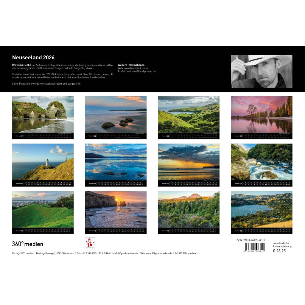 Aus traumhaften Neuseeland-Aufnahmen des Fotografen Christian Heeb hat die Redaktion von 360° medien die 13 schönsten Motive ausgewählt und in diesem Kalender zusammen gestellt. Präsentiert werden die Fotos auf hochwertigem Papier im Format 50 cm x 35 cm.