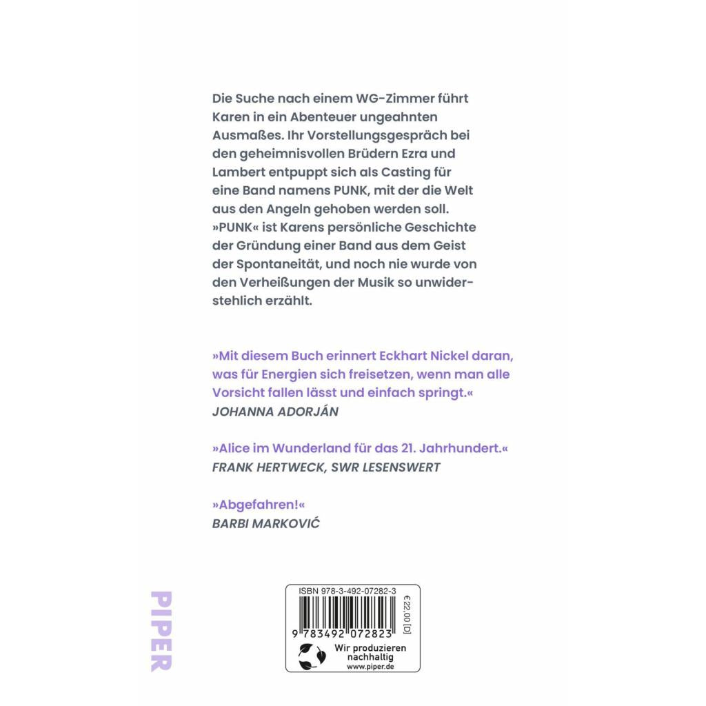 | Keyword: | Abschlussband der Trilogie; Bandgründung; Dreiecksgeschichte; Freundschaft; Hysteria; Künstlerroman; Liebesgeschichte; Musikband; Musikroman; Pop; Popkultur; Popliteratur; Punk; Punkmusik; Punks not dead; Roman; Sex Pistols; Shortlist Deutscher Buchpreis; Spitzweg; Timon Karl Kaleyta |