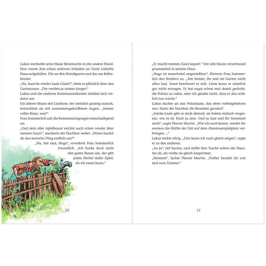 Ein Erstkommunion-Krimi - Das perfekte Geschenk zur Kommunion Ein neuer spannender Erstkommunionfall: Drei Detektive auf heißer Spur - Ein Erstkommunion-Krimi. Die Geschichte: Wie cool ist das denn: Lukas, Sarina und Karl und die anderen Kinder ihrer Kommuniongruppe fahren auf eine Freizeit. Doch als sie dort ankommen, wartet nicht nur der megatolle Abenteuerspielplatz auf sie, sondern auch eine richtige Verbrecherjagd! Eingeschmissene Fenster, beschmierte Wände, umgeworfene Mülltonnen - irgendwer möchte Tante Lisbeth aus ihrer Herberge vertreiben ... Wer hat es wohl auf sie abgesehen? Eine spannende Detektivgeschichte, die in einer Erstkommuniongruppe spielt: ¿ Ein Krimibuch für Kinder ab 7 Jahren ¿ Passend zur Geschichte farbig illustriert ¿ Warum nicht mal ein spannendes Buch zur Kommunion verschenken? Perfekt für Kommunionkinder / zur Erstkommunion