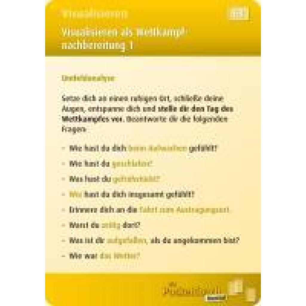 | Fachschema: | Mentaltraining~Training / Mentaltraining~Sport / Training~Training (körperlich)~Sport / Psychologie, Soziologie, Politik |