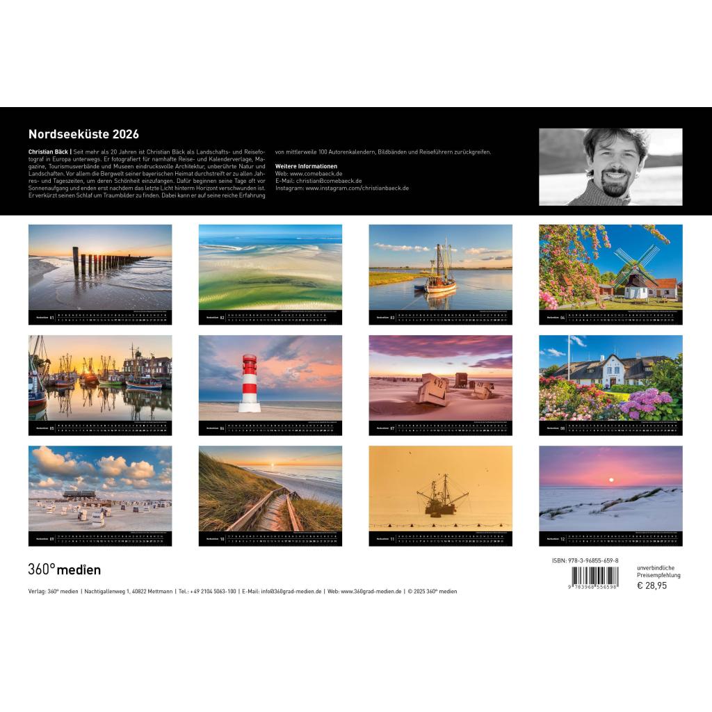 Aus traumhaften Nordsee-Aufnahmen des Fotografen Christian Bäck hat die Redaktion von 360° medien die 13 schönsten Motive ausgewählt und in diesem Kalender zusammen gestellt. Präsentiert werden die Fotos auf hochwertigem Papier im Format 50 cm x 35 cm.