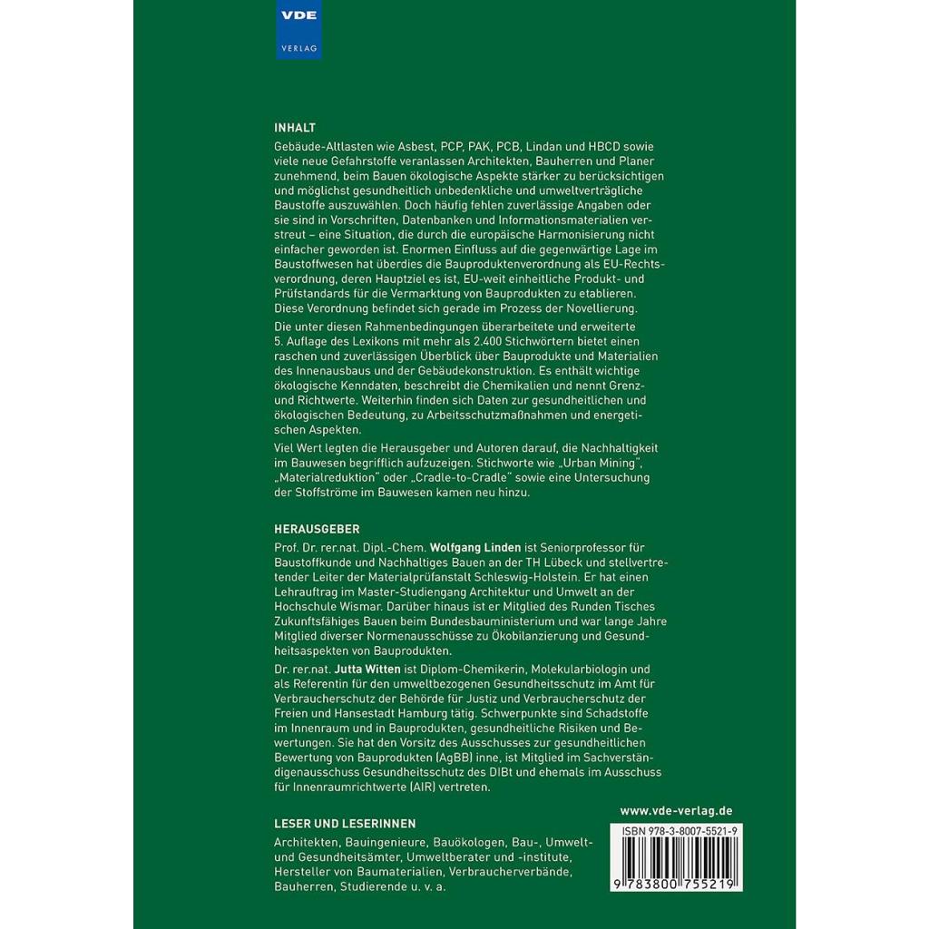 | Keyword: | Architektur; Asbest; Baubiologie; Bauchemikalie; Bauprodukt; Baustoff; Baustofflexikon; Bautechnik; Bauökologie; Chemikalie; Flammschutzmittel; Lösemittel; Raumausstattung; Schadstoff; Weichmacher; Ökologie; Ökologisches Bauen |
