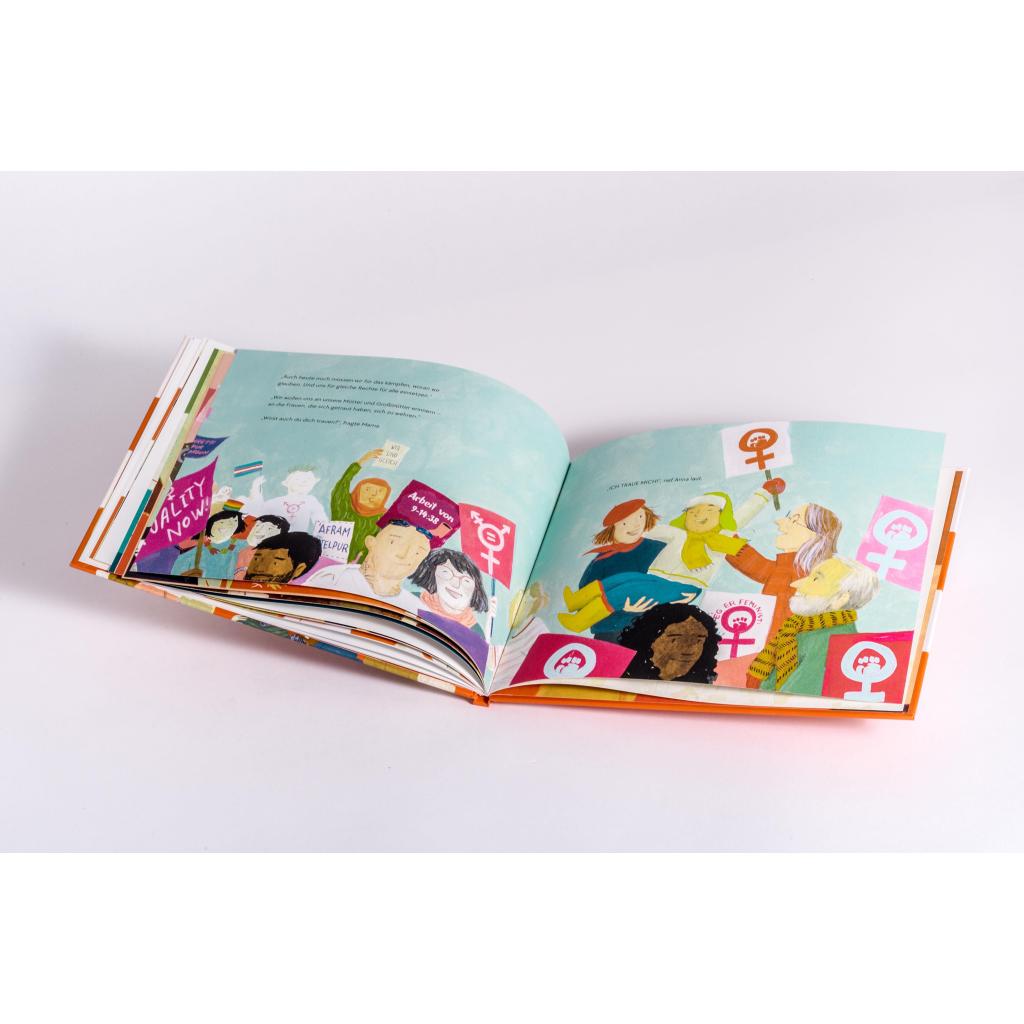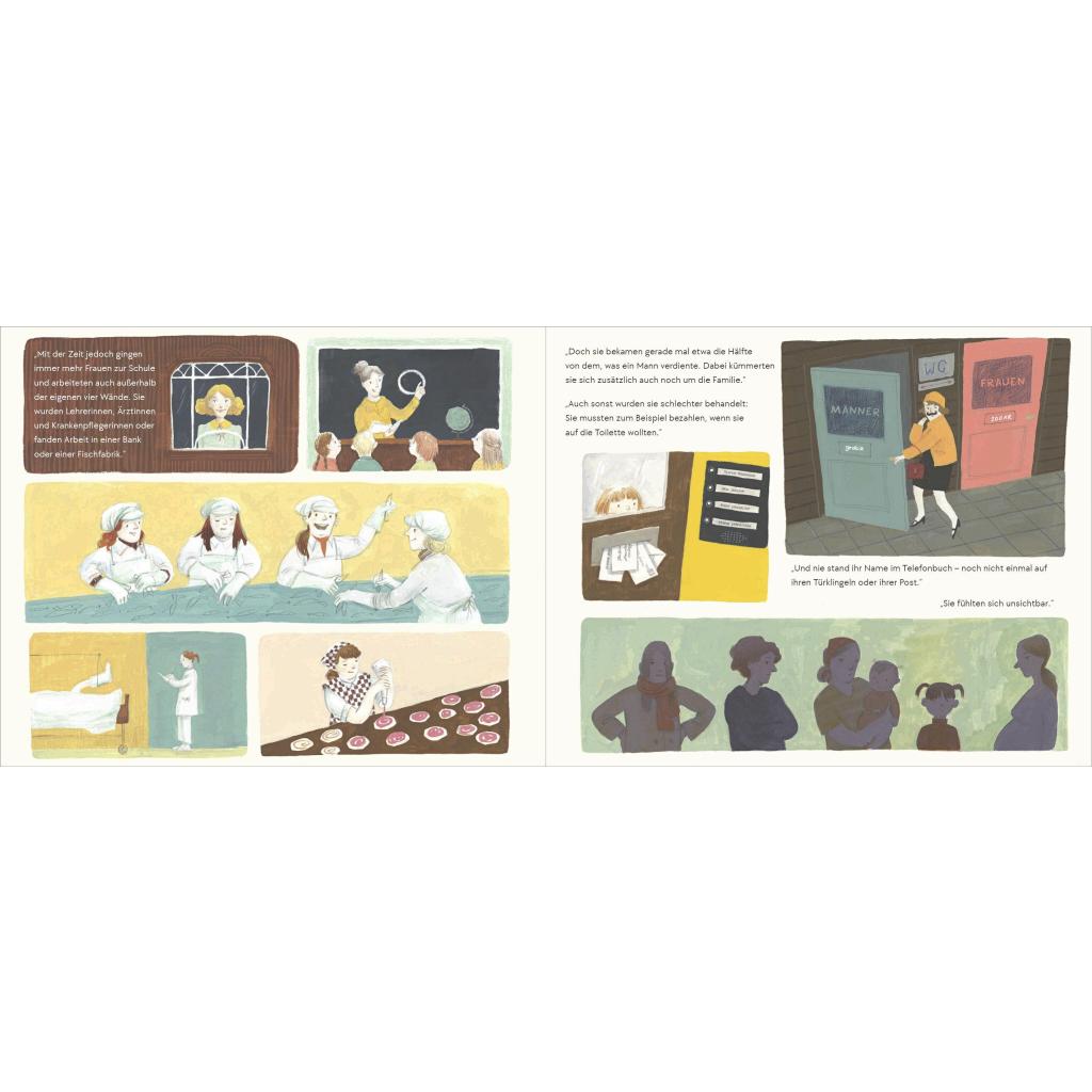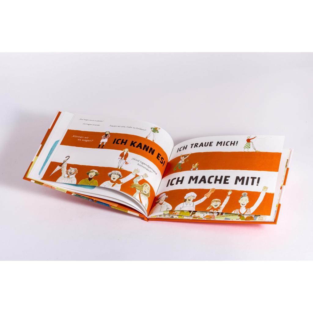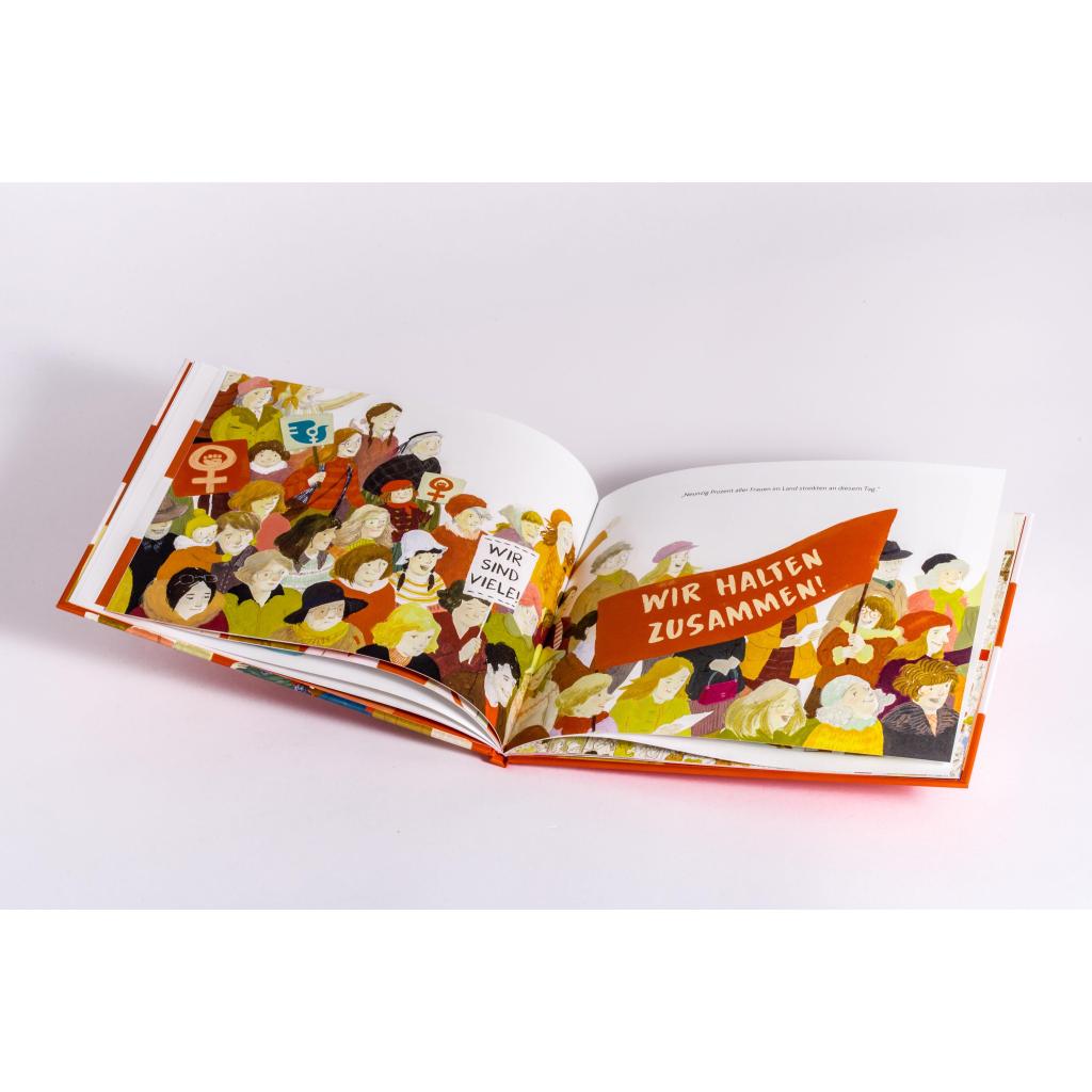 Ein inspirierendes Sachbilderbuch Vera und ihre Mama fahren in die Stadt, um für Frauenrechte zu demonstrieren, genau wie es die isländischen Frauen am sogenannten Langen Freitag im Jahr 1975 gemacht haben. Veras Mama erzählt, dass sich die Frauen an diesem Tag einfach freigenommen haben. Mamas und Omas, Fabrikarbeiterinnen, Lehrerinnen und sogar Seefahrerinnen haben ihre Arbeit niedergelegt und sind gemeinsam durch die Städte und Dörfer Islands marschiert, um für ihre Rechte zu kämpfen. Zusammen mit Vera erfahren kleine Leserinnen und Leser, wie dieser Streik nicht nur Frauen auf der ganzen Welt inspiriert, sondern auch große Veränderungen bewirkt hat. Mit einfachen Texten und kindlichen Illustrationen zeigt dieses eindrucksvolle Bilderbuch, was Frauen gemeinsam erreichen können. Nominiert für den Deutschen Jugendliteraturpreis 2025 in der Kategorie Sachbuch Jurybegründung: Wenn alle Frauen eines Landes einen Tag lang streiken, macht dies sicht- und spürbar, wie unverzichtbar ihre Arbeit ist. So geschehen in Island am 24. Oktober 1975. An diesem "Langen Freitag" ließen 90 Prozent aller Frauen ihre Arbeit ruhen und legten damit das Land lahm. Davon erzählt dieses zeitgeschichtliche Sachbilderbuch in einfachen Sätzen und mit farbenfrohen Illustrationen. Die kleine Anna und ihre Mutter machen sich fertig für eine Frauenrechtsdemonstration, da beginnt die Mutter von ihren Kindheitserinnerungen zum Frauenstreik 1975 zu erzählen. Sie spricht über die gesellschaftsbewegende Bedeutung des historischen Ereignisses und über ihr eigenes kindliches Erleben. Heute wie damals ziehen Frauen gemeinsam durch die Straßen mit der Parole "Ich traue mich! Ich kann es! Ich mache mit!" Beseelt von der gemeinschaftsstiftenden Aktion will auch Anna die Idee des Protests weitertragen. Mit Leichtigkeit widmet sich Linda Ólafsdóttir dem nach wie vor aktuellen Thema Frauenrechte. Sie sensibilisiert Kinder für Gleichberechtigung und soziale Fairness und bestärkt sie in ihrem Gerechtigkeitsempfinden. Kraftvoll und schlicht wird eine global einflussreiche soziale Bewegung erklärt und die Bedeutung demokratischer Teilhabe erlebbar gemacht. Anna Schaub hat die diese Schlichtheit gelungen aus dem Englischen übersetzt. Auf der Shortlist für den Heinrich-Wolgast-Preis der GEW 2025 Die Jury begründet ihre Entscheidung wie folgt: Am 24. Oktober 1975 ließen 90 Prozent aller isländischen Frauen ihre Arbeit in den Betrieben, den Schulen und in den Familien ruhen und versammelten sich zu Kundgebungen überall im Land. Annas Mutter erzählt ihrer kleinen Tochter, wie sie als Kind den Streik erlebte und welche Bedeutung er für Frauenkämpfe damals hatte und heute immer noch hat. So empört sich Anna und will nun auch mitmachen. In großen seitenfüllenden Tableaus, in verständlicher Sprache und anschaulichen farbenfrohen Bildern veranschaulicht Ólafsdóttir die Stimmung der mutigen Frauen damals und den fortdauernden Kampf. Lustvoll illustriert sie in witzigen Einzelszenen das streikbedingte Ungemach für Männer in Betrieben und im Haushalt.