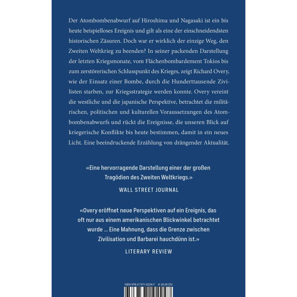| Keyword: | Atombombe; Atomwaffen; Bombardierung; Deutschland; Faschismus; Frieden; Großbritannien; Hiroshima; Jahrestag Atombombenabwurf; Japan; Kapitulation; Manhattan-Projekt; Nagasaki; Nationalsozialismus; Oppenheimer; Pazifik; Pazifikkrieg; Sachbuch Ende zweiter Weltkrieg; Sachbuch Geschichte; Tokio; USA; Zeitgeschichte; Zweiter Weltkrieg |