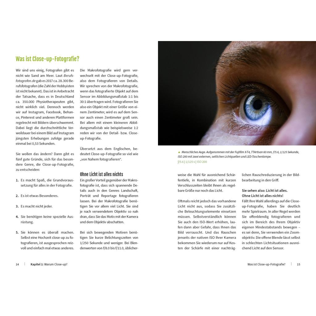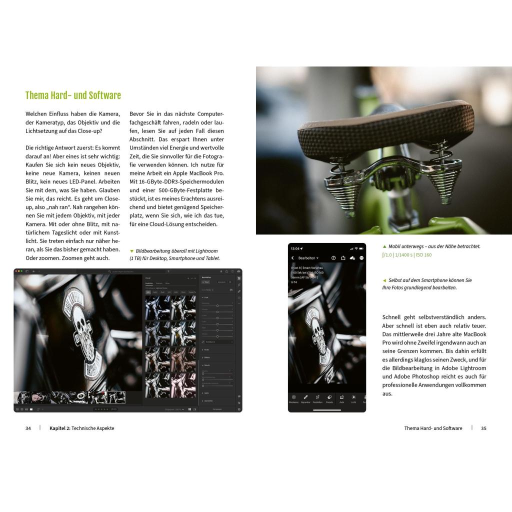 Know-how, Inspiration und praktische Tipps vom Profi Alles zu Equipment, Bildstil, Lichtsetzung & Herangehensweisen Mit dezemtem Post-Processing zum perfekten Bild Entdecken Sie die kreativen Möglichkeiten der Close-up Fotografie und setzen Sie außergewöhnliche Details wie auch flüchtige Augenblicke eindrucksvoll in Szene! Ob Perspektive, Blende oder Bildsprache: Profitieren Sie von Jürgen Pagels Know-how , von seiner Erfahrung und seinen Praxistipps , die er in diesem Buch von A bis Z und mit zahlreichen Fotos präsentiert. Beginnend mit den Kameraeinstellungen führt Sie der Autor systematisch bis zur Königsdisziplin, dem manuellen Fokussieren inklusive aller wichtigen Parameter. Freuen Sie sich auf gut nachvollziehbare Anleitungen zur Lichtsetzung sowie zur Bildgestaltung und wenden Sie die hilfreichen Anregungen zu Workflow, Postproduktion und Bildbearbeitung am besten gleich selbst an! Aus dem Inhalt: Alles zum benötigten Equipment Ohne Licht ist alles nichts Beherrsche die Belichtung Lernen, manuell zu fokussieren Zwischen Vorder- und Hintergrund Offenblendig fotografieren Butterweiche Bokehs mit "Altglas" Bewegen in enger Schärfentiefe Aufnahmemodi und Fokus-Peaking Regeln bewusst brechen Negativer Raum ist Kreativität Die Bedeutung von Bildsprache Inspirierende Motivideen Details im urbanen Raum Close-up-Projekte fotografieren Herausforderung Foodaufnahmen Dezente Nachbesserung & Retusche Einen Workflow entwickeln