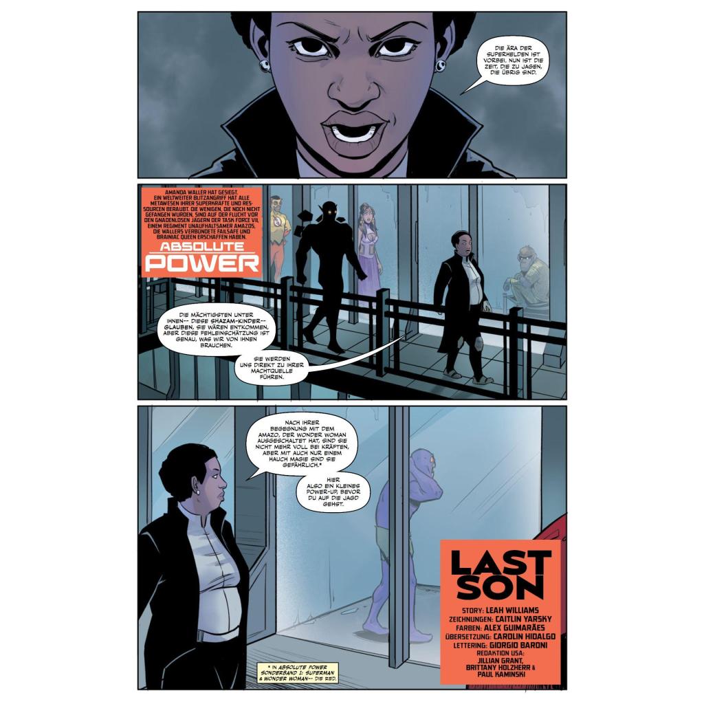ANGRIFF DER ANDROIDEN! Amanda Waller lässt die Task Force VII auf die Superhelden los! Die mächtigen und gnadenlosen Super-Androiden sind in der Lage, Wonder Woman, Flash, Green Lantern, Aquaman und allen anderen Metawesen die Superkräfte zu rauben! In einem verheerenden Blitzangriff fallen die mechanischen Monster der Task Force VII über die Amazonen von Themyscira her, verfolgen Aquamans Verbündete bis nach Atlantis, jagen die Speedster um Flash und nehmen sich sogar weltweit die Superwesen der Global Guardians-Organisation vor! Und auch für Batman und Nightwing gibt es kein Entrinnen vor dem mächtigen Failsafe ... Die komplette US-Miniserie Absolute Power: Task Force VII zum DC-Event Absolute Power in einem Band! In Szene gesetzt von John Layman (Batman - Detective Comics), Pete Woods (Action Comics), Jeremy Adams (Flash), Marco Santucci (Wonder Woman) und anderen! ENTHÄLT: ABSOLUTE POWER: TASK FORCE VII 1-7 Komplette US-Miniserie