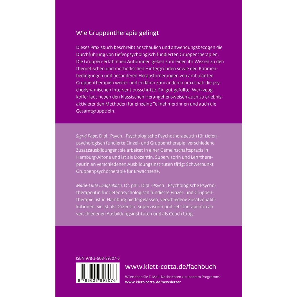 | Fachschema: | Gruppentherapie - Gruppenpsychotherapie~Psychotherapie / Gruppentherapie~Therapie / Gruppentherapie~Psychologie / Tiefenpsychologie~Tiefenpsychologie |