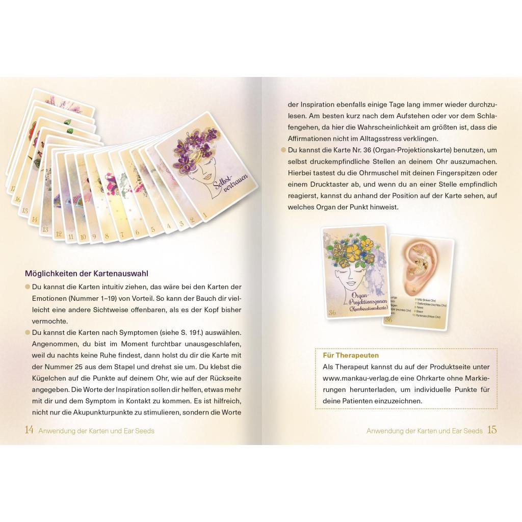 | Abbildungen: | 36 Karten farbig im A6-Format, 24-seitiges Booklet, 20 vergoldete Ear Seeds |