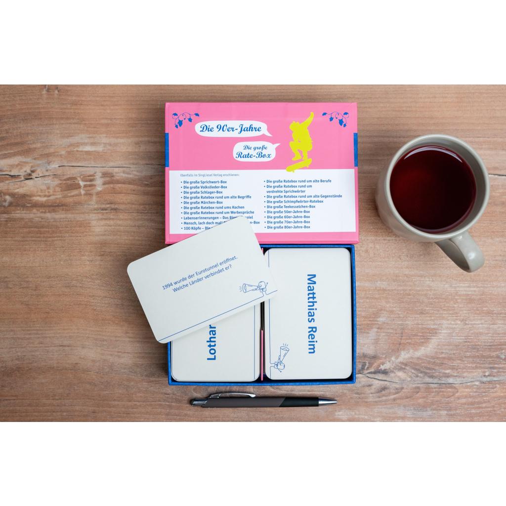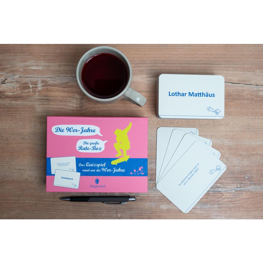Die 90er sind Kult - Das Nostalgie-Spiel für Senioren: Willkommen in den 90ern! Dieses nostalgische Quiz-Spiel für Senioren lässt in 100 Quiz-Fragen die 1990er Jahre wieder aufleben. Spielerisches Gedächtnistraining für Senioren: Mit Fragen zu Politik, Sport, Film, Fernsehen, Musik u.v.m. ist das große 80er-Quiz-Spiel ein beliebter Rätsel-Spaß und zugleich spielerisches Gedächtnistraining für Senioren. Geeignet bei Demenz: Dieses Quiz eignet sich auch als Spiel und Gedächtnistraining bei Demenz. Die Gestaltung der Quiz-Karten und die Auswahl der Quiz-Fragen garantieren auch bei Demenz jede Menge Spiel-Spaß. Erinnern Sie sich an die 90er und testen Sie Ihr Wissen: Welchen Spitznamen erhielt die Mumie, die 1991 in den Ötztaler Alpen entdeckt wurde? Wer übernahm 1998 von Helmut Kohl das Amt des Bundeskanzlers? Welcher Schokoriegel wurde 1991 in Twix umbenannt? Welcher Freiheitskämpfer wurde 1997 nach 27 Jahren aus dem Gefängnis entlassen? Alleine oder in der Gruppe: Gerätselt werden kann mit diesem Spiel für Senioren alleine oder in der Gruppe - aber immer mit viel Freude! XXL-Format und Großdruck: Das XXL-Format der Quiz-Karten im Großdruck erleichtert Senioren das Spielen und Rätseln. Ideal als Geschenk für Senioren: Dieses Quiz-Spiel ist in der Reihe "SingLiesel-Spiele für Senioren" erschienen und eignet sich auch hervorragend als Geschenk für Senioren - egal zu welchem Anlass: Ob zu Weihnachten, zum Geburtstag oder einfach als Mitbringsel.
