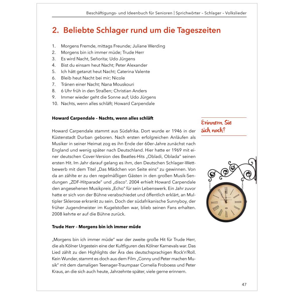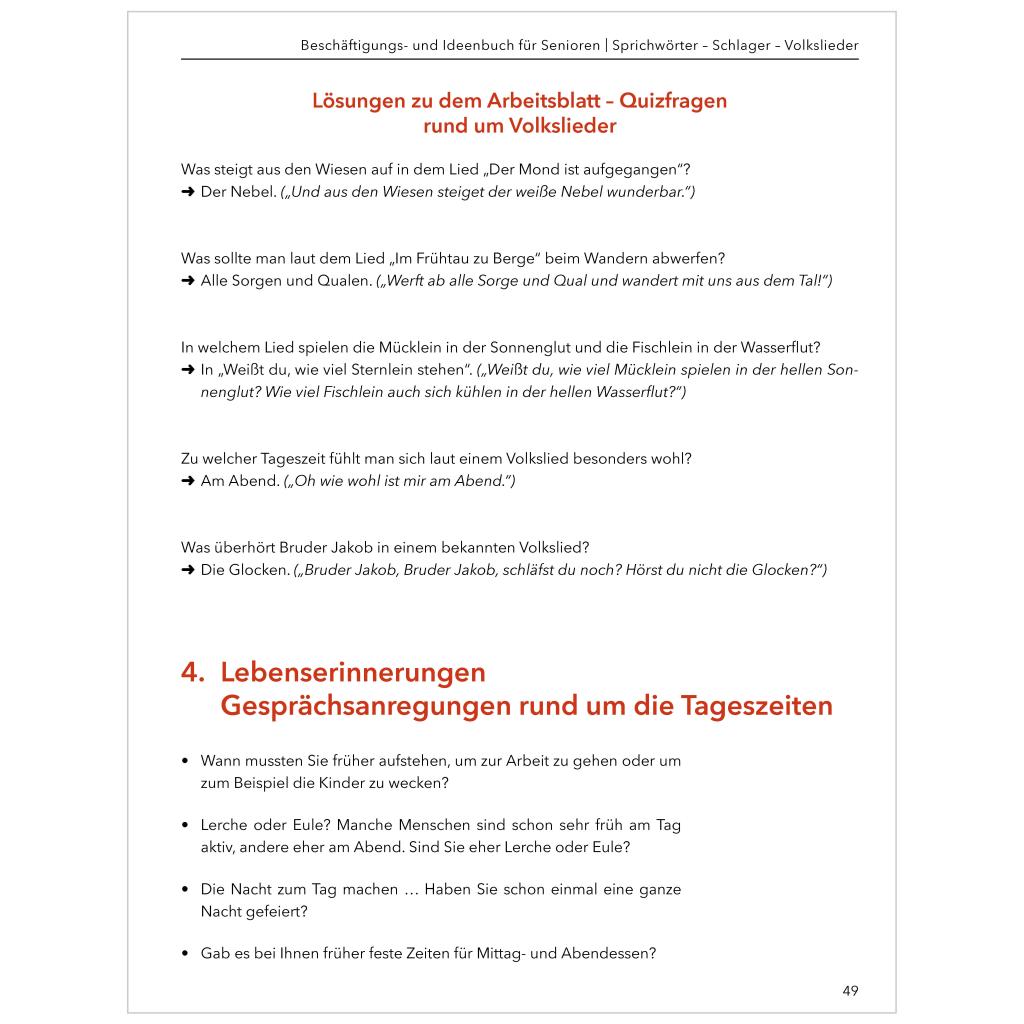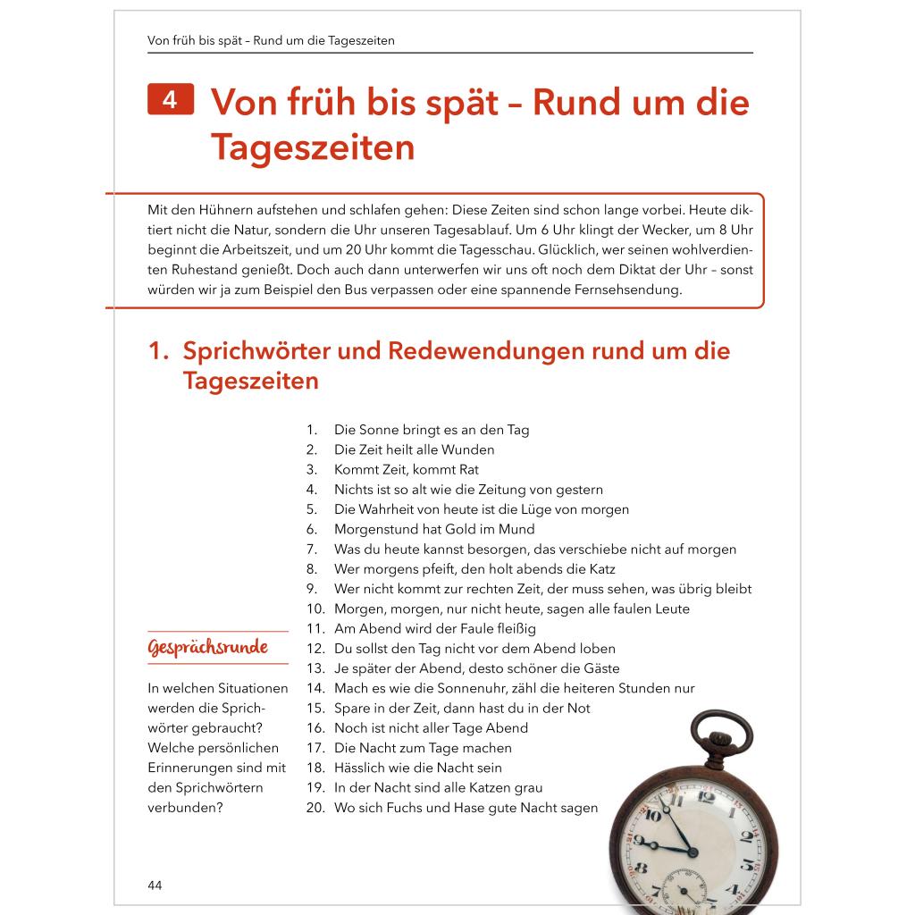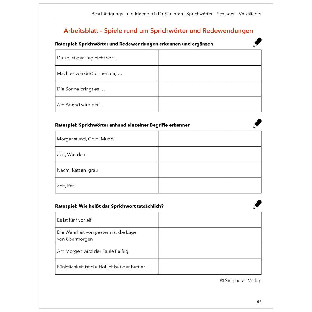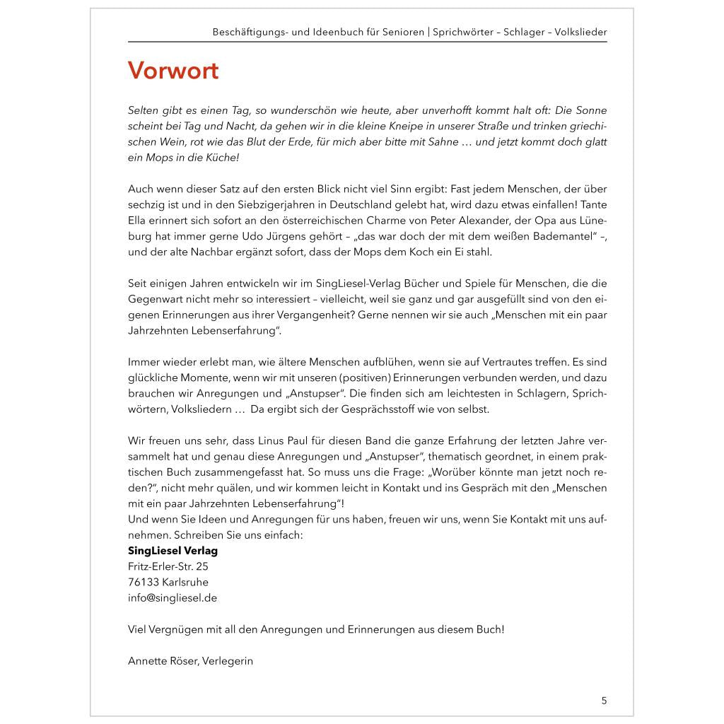 Das große Beschäftigungs- und Ideen-Buch für Senioren. Auch mit Demenz. Sprichwörter - Schlager - Volkslieder. (Mit Kopiervorlagen) So ein Tag, so wunderschön wie heute! Was du heute kannst besorgen, das verschiebe nicht auf morgen. Das bisschen Haushalt ... Sprichwörter, Schlager und Volkslieder sind Dauerbrenner schlechthin! Wer ein paar Jahrzehnte Lebenserfahrung hat, kennt jede Menge Sprichwörter und erinnert sich an unzählige Schlager und Volkslieder. In diesem Praxisbuch hat Linus Paul die beliebtesten und bekanntesten Sprichwörter, Schlager und Volkslieder aus vergangenen Jahrzehnten gesammelt und nach Themen sortiert: Wind und Wetter, Tagwerk und Arbeit, Urlaub und Reisen, Küche und Leibspeisen, die See und das Meer, Heller und Pfennig u.v.m. Jedes Kapitel enthält Ratespiele und Quizfragen zu den Sprichwörtern und viele Anregungen für Gesprächsrunden. Natürlich darf auch die eine oder andere Anekdote zu den bekannten Schlagern und Interpreten nicht fehlen. Das große Beschäftigungs- und Ideenbuch ist das Standardwerk für die Beschäftigung von und mit Senioren. Auch mit Demenz. ¿ Arbeitsblätter mit Rate- und Ergänzungsspielen ¿ Übungen für das Gedächtnistraining ¿ Geeignet für Biografiearbeit Alle Ideen können unkompliziert und ohne lange Vorbereitungen umgesetzt werden. Sie bilden den Ausgangspunkt, um miteinander ins Gespräch zu kommen, miteinander zu singen und sich an Erlebtes zu erinnern. Gut leben im Alter. Auch mit Demenz. Das große Beschäftiungsbuch für Senioren. Auch mit Demenz. Mit Arbeitsblättern und Kopiervorlagen