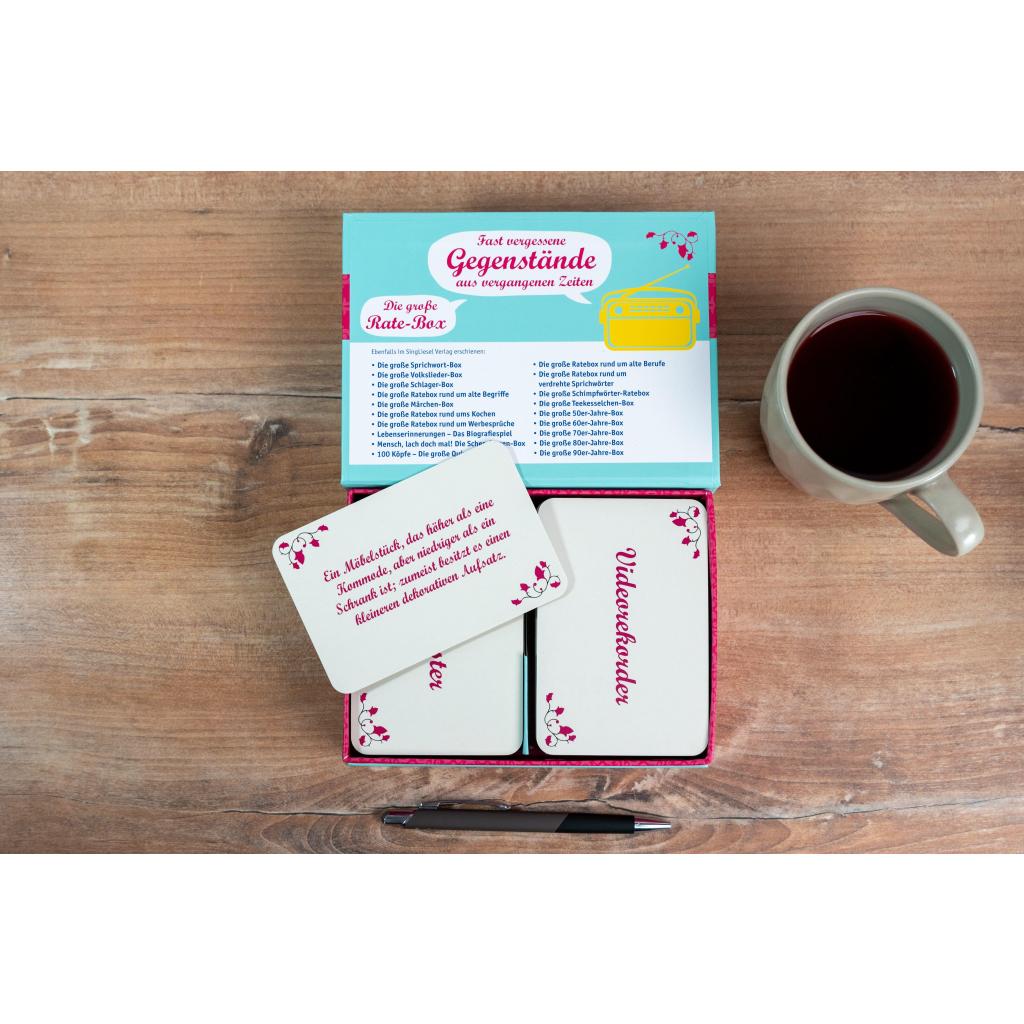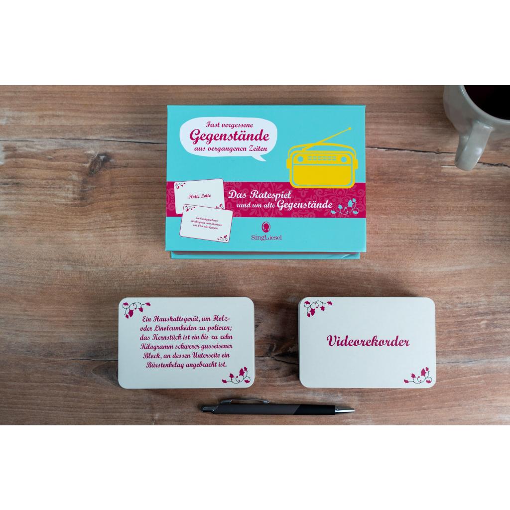 Fast vergessene Gegenstände - Das große Quiz-Spiel für Senioren Das nostalgische Ratespiel enthält 100 Karten im XXL-Format rund um fast vergessene Gegenstände aus vergangenen Zeiten. Die Spielidee ist einfach und immer wieder unterhaltsam: Auf der Vorderseite der Karten steht die Bezeichnung eines Gegenstandes, der heute fast in Vergessenheit geraten ist. Eine Erklärung finden Sie auf der Rückseite. So kann in beide Richtungen gerätselt werden. Entweder man rätselt, wer oder was ein "Fidibus" war, oder man sucht nach dem Namen für einen aus einem Papierstreifen gefalteten Anzünder. Gerätselt werden kann so alleine oder in der Gruppe - aber immer mit viel Freude!
