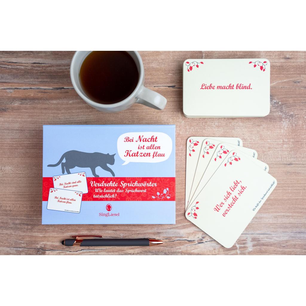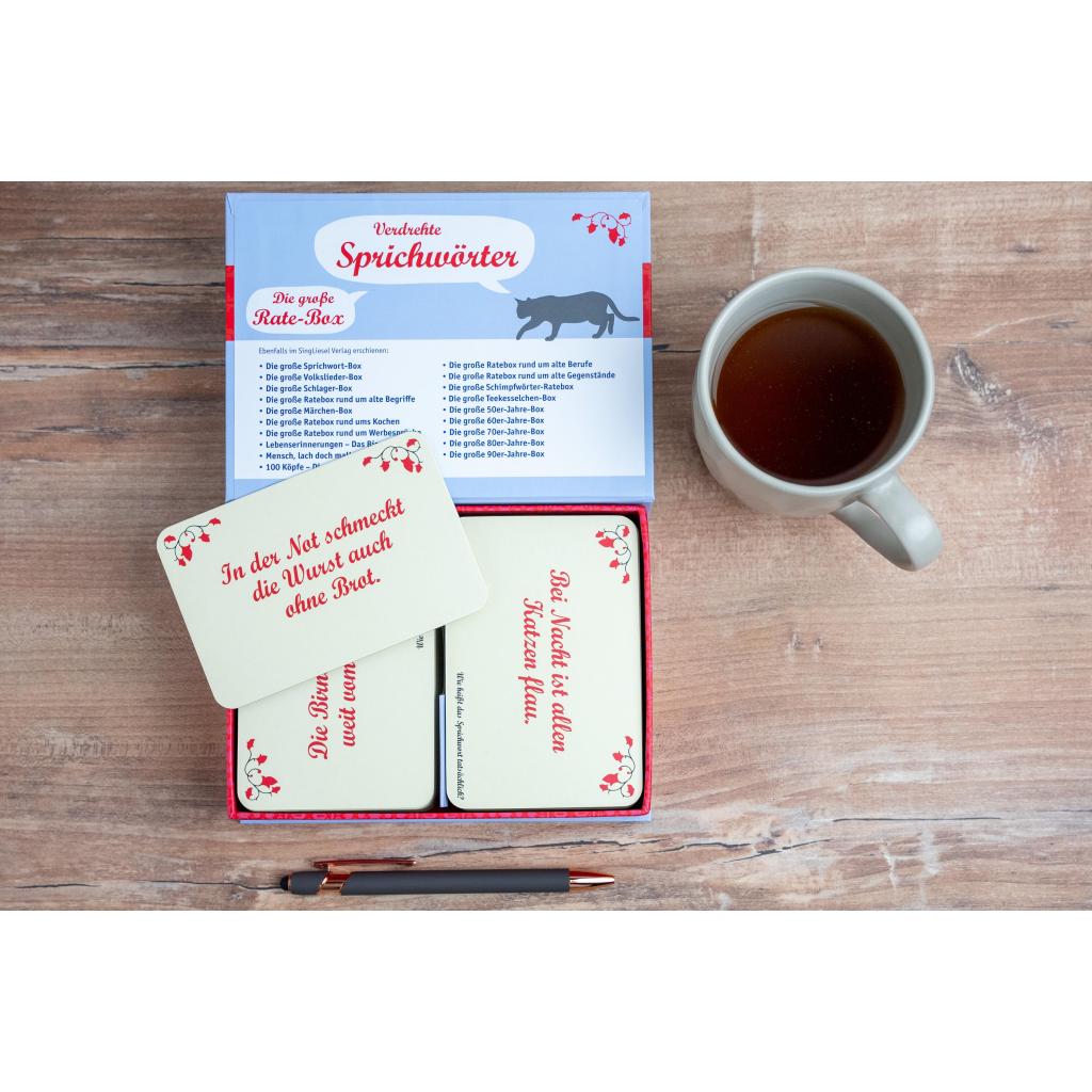 Verdrehte Sprichwörter - Das lustige Quiz-Spiel für Senioren Bekannte und beliebte Sprichwörter erkennen. 100 Rate-Karten im XXL-Format mit wohlvertrauten Sprichwörtern - aber verdrehten: "Wer ernten will, muss mähen." "Irren ist männlich." "Die Birne fällt nicht weit vom Strauch." Auf ihre verdrehte und doch Sinn erzeugende Art und Weise bereiten die eigentlich bekannten Sprichwörter bereits beim ersten Lesen großen Spaß. Und die Frage "Wie lautet das Sprichwort tatsächlich?" wird zur Knobelaufgabe. Auf jeder Ratekarte ist auf der Vorderseite ein verdrehtes Sprichwort zu sehen. Das korrekte Sprichwort kann erraten und auf der Rückseite nachgelesen werden. Eine amüsante Spielidee, die zum Lachen und Knobeln einlädt!
