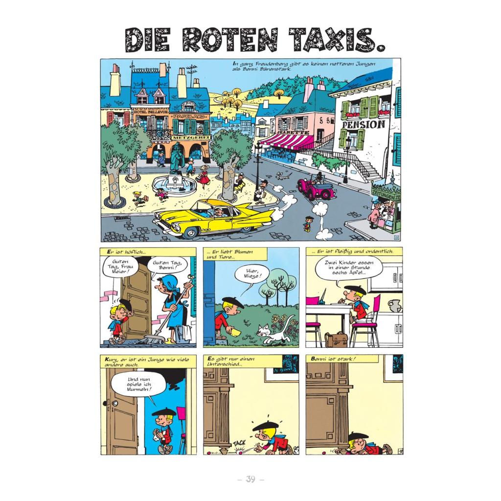 Benni ist ein kleiner, ganz normaler Junge - das heißt, er wäre es gern, ist er aber nicht, denn er ist unglaublich stark! Schwierigkeiten bereitet ihm nur, seine Kräfte im Alltag richtig zu dosieren. Zumindest solange er keinen Schnupfen hat, denn dann verlassen ihn seine Kräfte, und er ist wirklich nur ein braver, kleiner Junge, dem allerdings jede Art von schlechtem Benehmen oder gar kriminelle Machenschaften strikt zuwider sind. So gerät er stets aufs Neue in abenteuerliche Verwicklungen, bei denen er seine Superkräfte dann doch sinnvoll einsetzen kann, und wenn er schön darauf achtet, sich nicht zu erkälten, haben Schurken und Bösewichter gegen ihn kaum eine Chance. Die »Benni Bärenstark Gesamtausgabe« versammelt alle 14 Abenteuer des charmanten Klassikers von »Schlümpfe«-Erfinder Peyo in 5 umfangreichen Bänden, ergänzt um bisher in Deutschland unveröffentlichtes Bonusmaterial und informative Dossiers von Comic-Experte Patrick Gaumer.