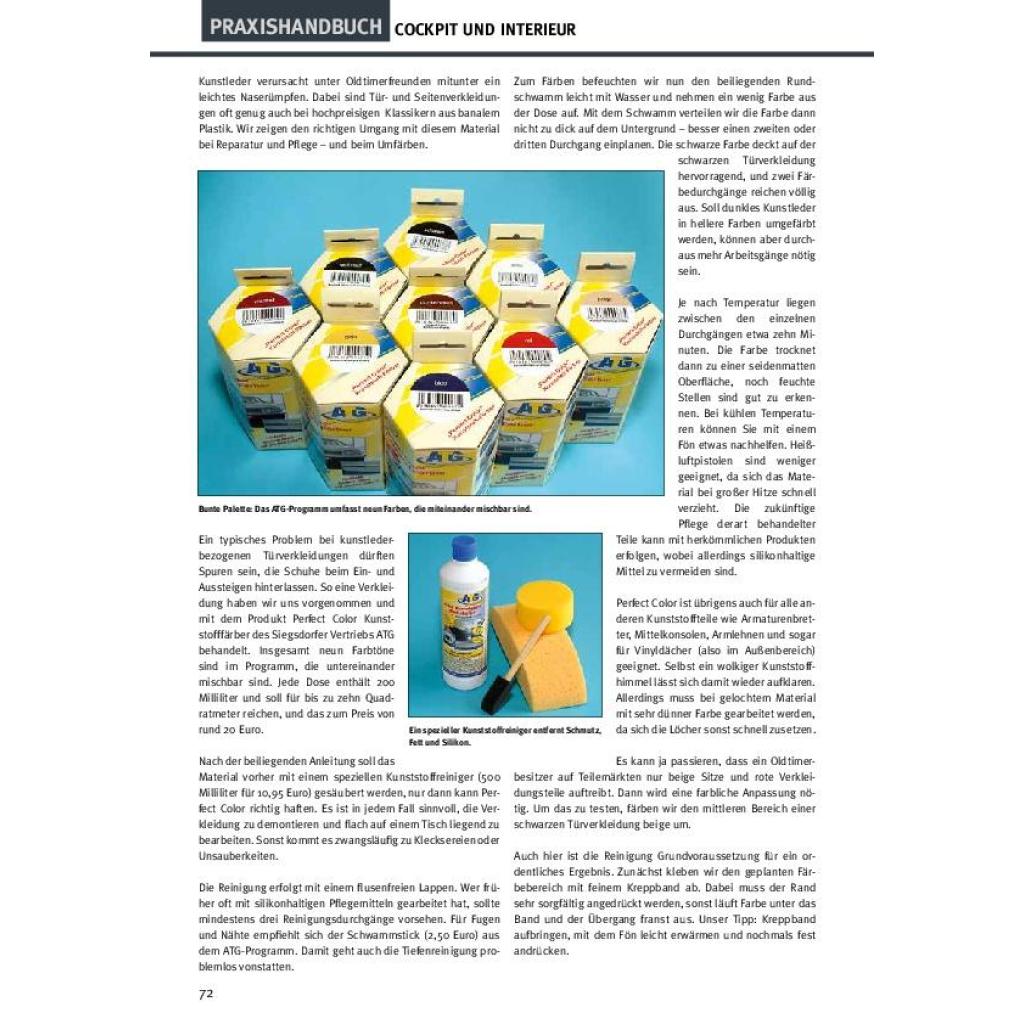 | Keyword: | Armaturen; Autositz; Cockpit; DIY; Do it yourself; Fachliteratur; Glas; Interieur; Kunstleder; Kunststoff; Leder; Oldtimer; Pflege; Pflegeanleitung; Pflegen; Pflegetipps; Polster; Praxis; Praxisratgeber; Ratgeber; Reparaturanleitung; Sachbuch; Stoff; Tipps und Trick; Tips und Tricks |