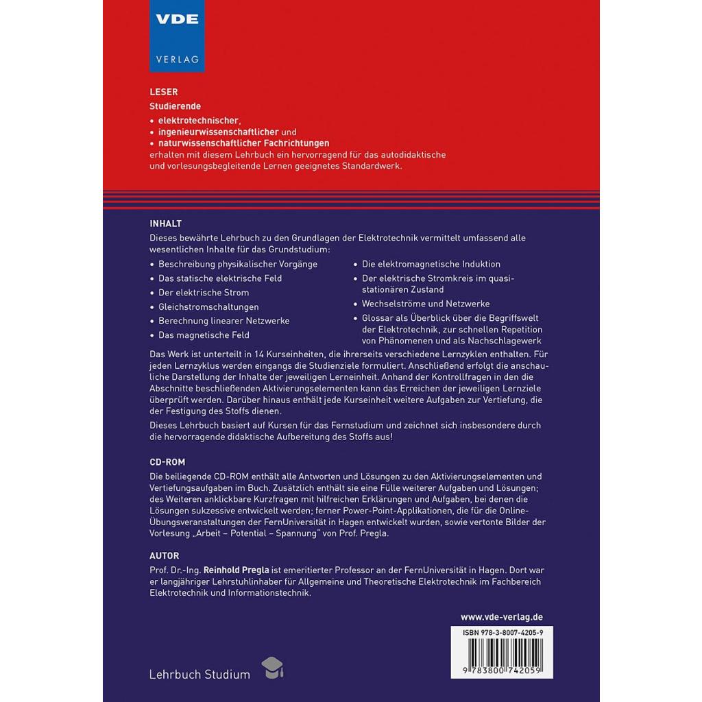 Dieses bewährte Lehrbuch zu den Grundlagen der Elektrotechnik vermittelt umfassend alle wesentlichen Inhalte für das Grundstudium: ¿ Beschreibung physikalischer Vorgänge ¿ Das statische elektrische Feld ¿ Der elektrische Strom ¿ Gleichstromschaltungen ¿ Berechnung linearer Netzwerke ¿ Das magnetische Feld ¿ Die elektromagnetische Induktion ¿ Der elektrische Stromkreis im quasistationären Zustand ¿ Wechselströme und Netzwerke ¿ Glossar als Überblick über die Begriffswelt der Elektrotechnik, zur schnellen Repetition von Phänomenen und als Nachschlagewerk Das Werk ist unterteilt in 14 Kurseinheiten, die ihrerseits verschiedene Lernzyklen enthalten. Für jeden Lernzyklus werden eingangs die Studienziele formuliert. Anschließend erfolgt die anschauliche Darstellung der Inhalte der jeweiligen Lerneinheit. Anhand der Kontrollfragen in den die Abschnitte beschließenden Aktivierungselementen kann das Erreichen der jeweiligen Lernziele überprüft werden. Darüber hinaus enthält jede Kurseinheit weitere Aufgaben zur Vertiefung, die der Festigung des Stoffs dienen. Dieses Lehrbuch basiert auf Kursen für das Fernstudium und zeichnet sich insbesondere durch die hervorragende didaktische Aufbereitung des Stoffs aus!