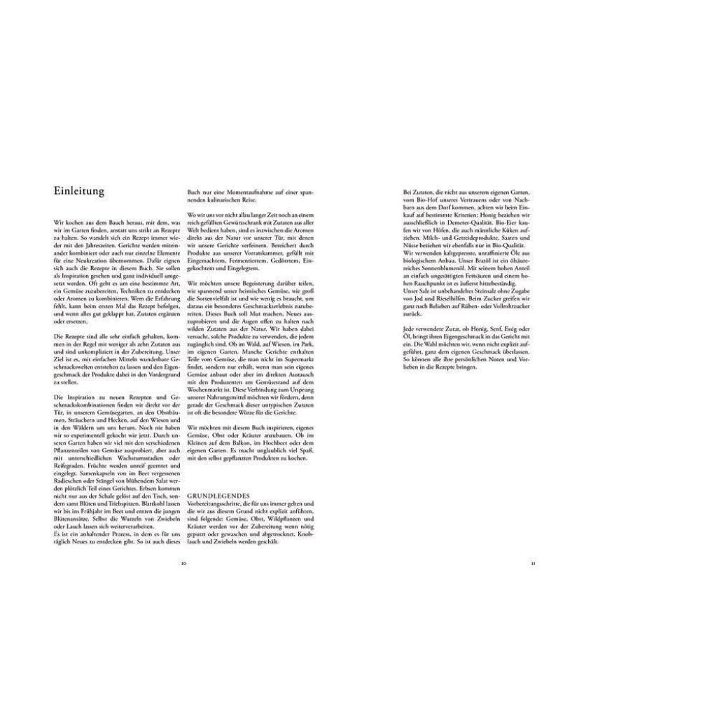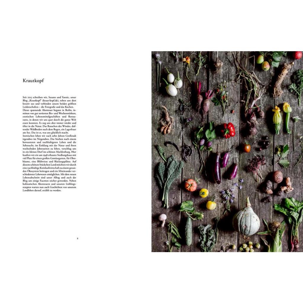 Krautkopf ¿ das Kochbuch zum vegetarischen Foodblog! Kochen mit erntefrischen Zutaten aus dem eigenen Küchengarten, von den Wiesen und Wäldern im unmittelbaren Umland. Die Foodblogger Susann Probst und Yannic Schon vom mehrfach ausgezeichneten Blog ¿Krautkopf¿ (www.kraut-kopf.de) experimentieren mit dem, was die Natur zu bieten hat: Früchte, Blüten, Samen, Blätter und Wurzeln, gewachsen in kostbarer Erde. Die vegetarischen und veganen Rezepte kommen mit wenigen Bestandteilen aus, sind einfach in der Zubereitung. Salz ist dabei unverzichtbar. Es wird seit Jahrhunderten als Würzmittel und zur Konservierung verwendet und symbolisiert die Einfachheit und Reduktion auf das Wesentliche: den Eigengeschmack der Produkte. Durch die Zubereitung mit Hitze, am ursprünglichsten über der Glut, entfaltet sich eine Vielzahl an Geschmacksnuancen. Vom rohen Produkt über das Dünsten, Dämpfen, Braten, Rösten, Räuchern bis zum Verbrennen ¿ Hitze verwandelt Lebensmittel, kann sie knusprig, zart, weich oder fest werden lassen, Aromen hervorheben und verstärken. Je nach Zutat und Rezept entstehen so aus der Kombination der drei Grundlagen Erde, Salz und Glut köstliche Gerichte, die sich stets im Rhythmus der Jahreszeiten verändern.