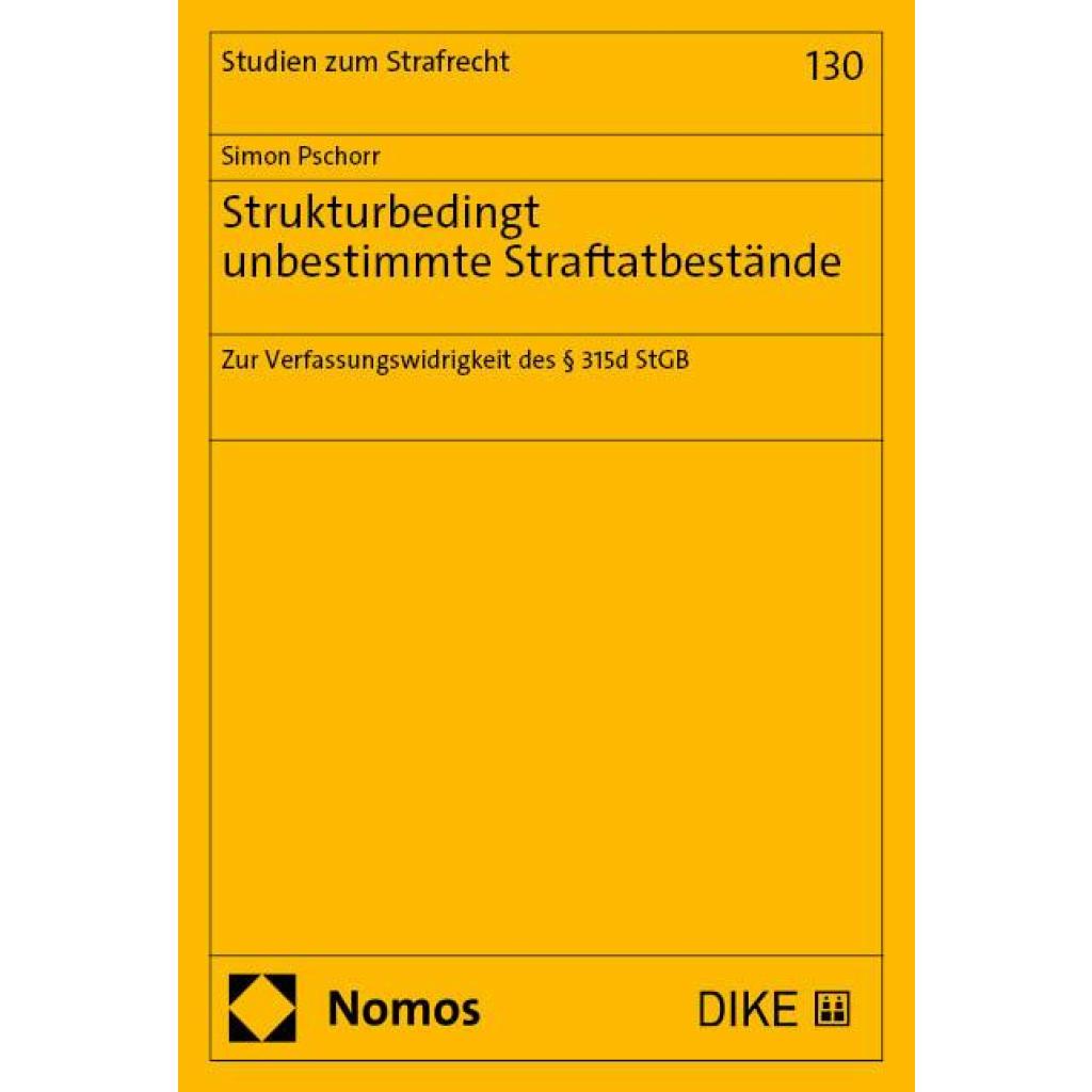 | Keyword: | Bestimmtheit; Bestimmtheitsgebot; Bestimmtheitsgrundsatz; Clarity of norms; Contradiction; Gesetzgeberwille; Gesetzlichkeitsprinzip; Kfz-Rennen; Kraftfahrzeugrennen; Legislative intent; Motor vehicle racing; Normenklarheit; Precision; Principle of legality; Raser; Raserfälle; Speeding; Strafgesetzgebung; Structure; Struktur; Systematics; Systematik; Widerspruch; § 315d StGB |