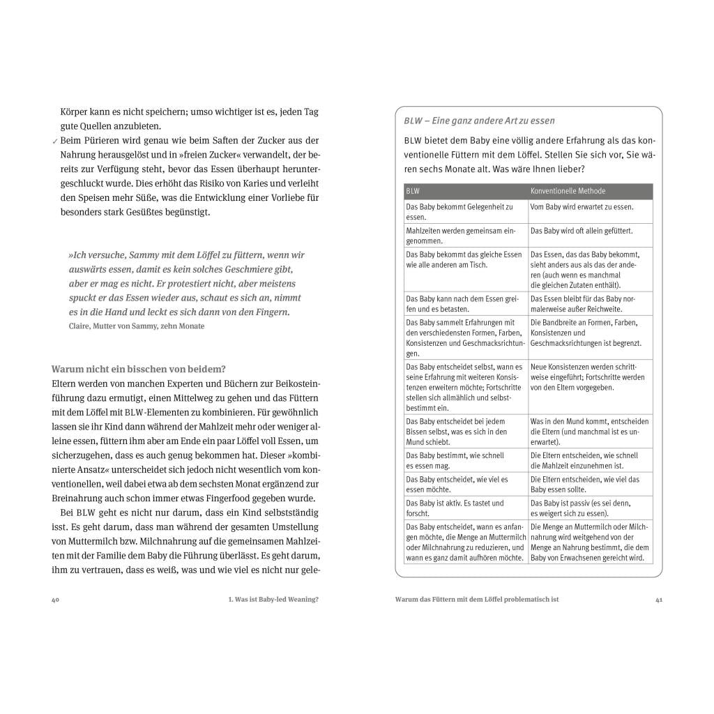 Was Babys wirklich wollen Beim Erfolgskonzept Baby-led Weaning (kurz BLW) bekommen Kinder ab dem Beikostalter statt Brei feste Nahrung angeboten, die sie selbstständig essen können. BLW unterstützt das Kind in seinen Entwicklungsschritten, fördert seine Eigenständigkeit, macht Schluss mit den gewohnten »Brei-Fütter-Schlachten« und hilft Kindern, ernährungsbewusste Erwachsene zu werden. Mit diesem Grundlagenbuch von Rapley und Murkett wurde BLW auch in Deutschland populär. Unter Berücksichtigung des neuesten Stands der Wissenschaft wurde es komplett überarbeitet und erweitert. Ergänzt wurden u.a. neueste Informationen zu Allergien, sicherem Füttern und der Anwendung von BLW in der Kinderbetreuung.