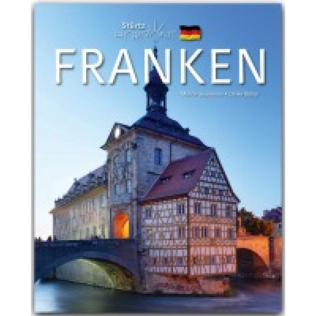 "Franken - es ist der freundliche Name eines freundlichen Landes, in welches wir den Leser dieser Blätter jetzt einführen wollen. Weit, fruchtbar und lieblich breitet es sich im Herzen von Deutschland aus." So schrieb schon Gustav von Heeringen im 19. Jahrhundert und noch heute erscheinen die Landschaften der Region freundlich, idyllisch und abwechslungsreich: Zwischen Spessart und Fichtelgebirge, zwischen Rhön und Altmühltal wandert man in den rauen Höhen der Mittelgebirge oder in den idyllischen Tälern der Fränkischen Schweiz, fährt vom lieblichen Maintal bis zum Fränkischen Seenland, von den dichten Wäldern des Steigerwaldes bis zu den landwirtschaftlichen Kulturflächen des Ochsenfurter Gaus. In den Städten und Dörfern erzählen zahllose Kunst- und Kulturschätze von der bedeutenden Vergangenheit Frankens. Die ehemalige Freie Reichsstadt Nürnberg mit der Kaiserburg ist die größte Frankens, Würzburg und Bamberg prunken mit ihren zum Weltkulterbe der UNESCO erklärten Schätzen. In Bayreuth und Ansbach kann man das Erbe der Markgrafen bewundern, in Aschaffenburg das prächtige Renaissanceschloss Johannisburg, Freie Reichsstädte wie Rothenburg ob der Tauber oder Bad Windsheim zeugen vom Stolz der Bürger. Über 250 Bilder zeigen Franken in seiner ganzen Vielfalt. Spezialkapitel berichten über den Barockarchitekten Balthasar Neumann, die Dichter der Region, den fränkischen Wein, den Nürnberger Maler Albrecht Dürer, die Markgräfin Wilhelmine von Bayreuth und über die kulinarischen Spezialitäten. HORIZONT... ist eine Reise-Bildband-Reihe mit über 80 Titeln, professionell fotografiert von renommierten Reisefotografen - - - Bis zu 350 Bilder auf 160 großformatigen Seiten - - - Alle wichtigen Sehenswürdigkeiten - - - Kultur und Traditionen - - - Kenntnis- und umfangreiche Texte - - - Ausführliche Bildunterschriften - - - Farbige Übersichtskarte - - - Detailliertes Register.