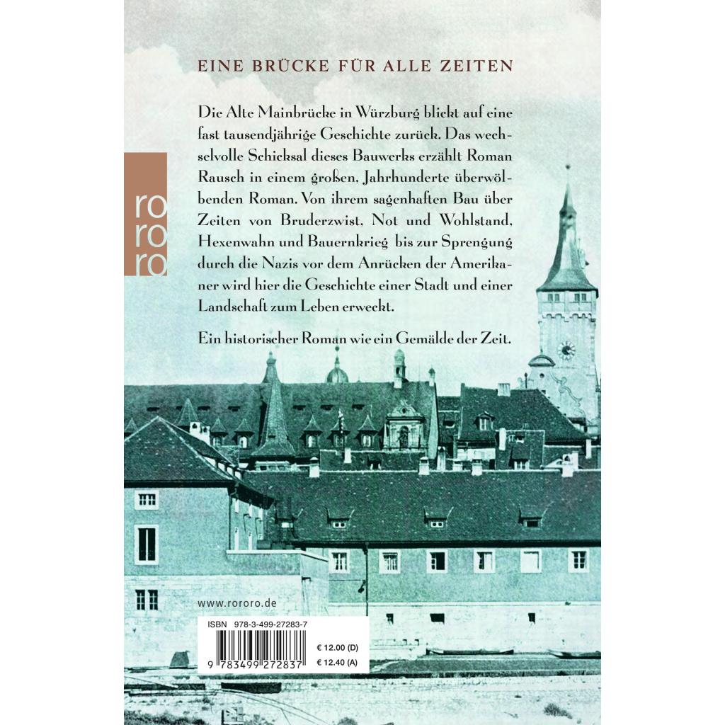 Eine Brücke für alle Zeiten Die Alte Mainbrücke in Würzburg blickt auf eine fast tausendjährige Geschichte zurück. Das wechselvolle Schicksal dieses Bauwerks erzählt Roman Rausch in einem großen, Jahrhunderte überwölbenden Roman. Von ihrem sagenhaften Bau über Zeiten von Bruderzwist, Not und Wohlstand, Hexenwahn und Bauernkrieg, bis zur Sprengung durch die Nazis vor den anrückenden Amerikanern wird hier die Geschichte einer Stadt und einer Landschaft zum Leben erweckt. Ein historischer Roman wie ein Gemälde der Zeit