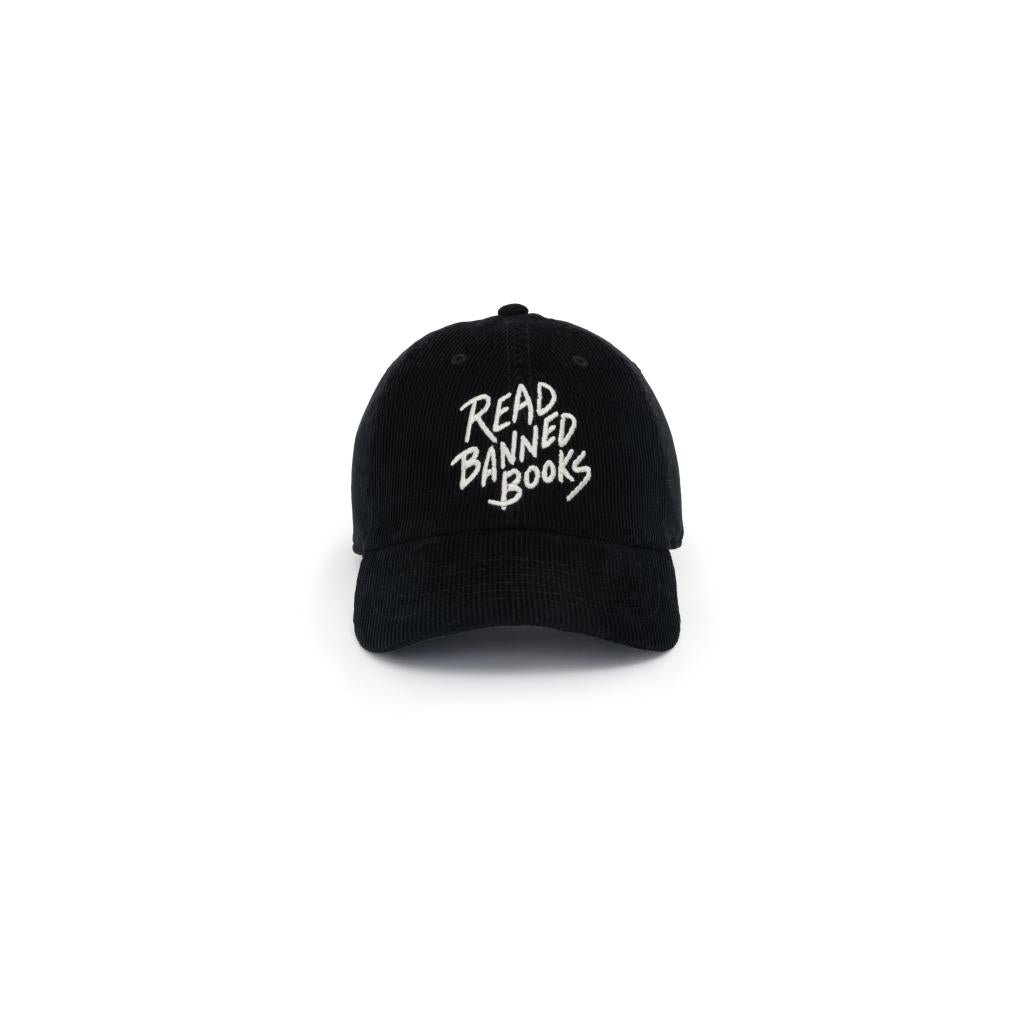 Read Banned Books cap Read Banned Books cap Product Details 100% cotton corduroy baseball cap Adjustable brass metal buckle closure Color: black Illustration by Topher MacDonald