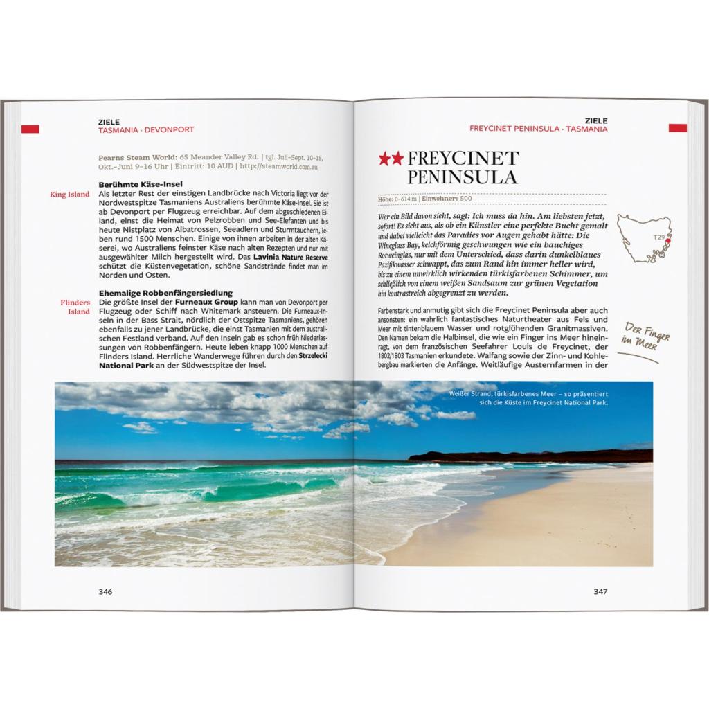 Beeindruckende Naturvielfalt, Begegnungen mit Aborigines und exotische Tierwelten - unser Reiseführer Australien begleitet Sie durch einen Kontinent voller lohnender Reiseziele. Sieben spannende Touren führen ins Land der Kängurus, Koalas und Eukalyptusbäume, auf den Inselstaat Tasmanien, zum berühmten Ayers Rock, auch Uluru genannt, und in die Trendmetropolen Sydney, Melbourne, Brisbane, Canberra und Perth. Orte, die Sie auf keinen Fall verpassen sollten, sind im großen Kapitel Sehenswürdigkeiten von A - Z ausführlich beschrieben: vom Opernhaus in Sydney, der Harbour Bridge und dem Bondi Beach bis zu den Blue Mountains, Australiens wildem Buschland, und der bunten Unterwasserwelt des Great Barrier Reef. Unsere Reisetipps verraten, wo Sie das Außergewöhnliche entdecken, die besten Wellen in Australien zum Surfen finden und wie Sie "Down Under" entspannt erleben - damit Ihre Reise durch Australien einmalig wird. Unser Reiseführer Australien ist der perfekte Begleiter für zuhause und unterwegs! Und all das in 6 Kapiteln inklusive: - Wissenswertes über Australien und die facettenreichen Ausflugsziele des Landes - Gliederung der wichtigsten Sehenswürdigkeiten von A bis Z, kompetente Sterne-Bewertung der Top-Ziele, übersichtliche Infografiken und spannende 3D-Darstellungen - Spannende Tourenvorschläge - Australien in sieben verschiedenen Touren entspannt entdecken - Erleben & Genießen in Australien - Empfehlungen unserer Autoren zu Hotels, Restaurants, Shopping und Entspannung - Fundierte Expertentipps zum Staunen, Durchatmen und Spaß haben sowie für ganz besondere Erlebnisse, die einfach nicht für Geld zu bekommen sind - Magische Momente für einen einzigartigen Urlaub in Australien - Kommen Sie zur rechten Zeit an den richtigen Ort und erleben Sie Unvergessliches - Spannende Hintergrundinfos zur Geschichte von Australien, zu Landschaft und Klima, Wirtschaft und Kultur, zu seinen Menschen und deren Alltag - Servicekapitel mit praktischen Informationen zur Urlaubsplanung, für die Vorbereitung der Reise und Wissenswertes vor Ort Dieser Reiseführer ist perfekt für Sie geeignet, wenn Sie ... ... sich einen Reiseführer mit einem hohen Maß an Urlaubsinspiration wünschen ... sich vor Ihrer Reise umfassend über Land und Leute informieren möchten ... Wert auf Kultur und Natur legen ... auf der Suche nach außergewöhnlichen Momenten sind ... Australien durch die kenntnisreichen Tipps unserer Experten entdecken möchten ... sich einen durchdachten Reiseführer für unterwegs und zuhause wünschen