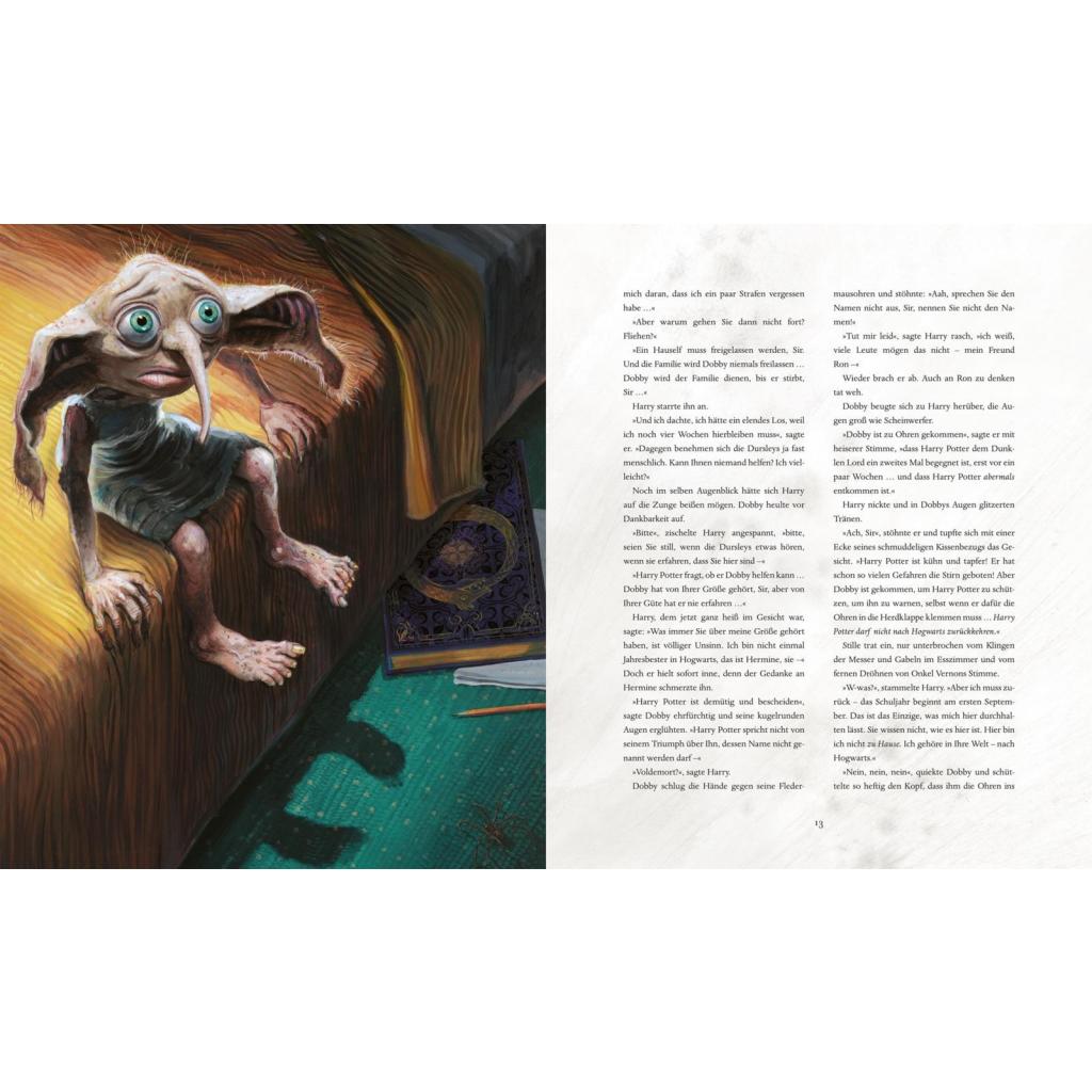 Die Schmuckausgabe von »Harry Potter und der Stein der Weisen« hat Fans überall auf der Welt verzaubert und ist sofort zu einem internationalen Bestseller geworden. Ein Jahr später folgt nun die von Jim Kay illustrierte Ausgabe von »Harry Potter und die Kammer des Schreckens«. Atemberaubende Szenen und unvergessliche Figuren - darunter Dobby und Gilderoy Lockhart - erwachen zum Leben und werden sowohl Fans der Serie als auch neue Leser verzaubern. »Als ich Jim Kays Illustrationen zum ersten Mal gesehen habe, war das ein sehr bewegender Moment. Ich finde seine Interpretation von Harry Potters Welt großartig und fühle mich geehrt, dass er diese Welt mit seiner Kunst zum Leben erweckt hat.« (J.K. Rowling) Dies ist der zweite Band der Harry-Potter-Serie, die Generationen geprägt hat. Alle Bände der Serie: Harry Potter und der Stein der Weisen Harry Potter und die Kammer des Schreckens Harry Potter und der Gefangene von Askaban Harry Potter und der Feuerkelch Harry Potter und der Orden des Phönix Harry Potter und der Halbblutprinz Harry Potter und die Heiligtümer des Todes Die Harry-Potter-Serie ist abgeschlossen.