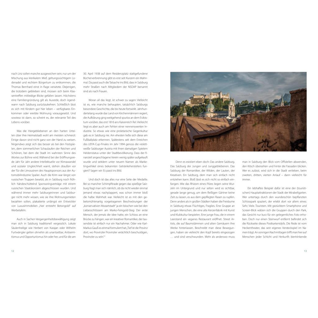 Du Schöne! Du Schöne? Du Schöne. Festung, Kapuzinerberg, Getreidegasse, Dom - alles tausendfach gesehen? Und langweilig in aller Pracht und Schönheit? Dann machen Sie sich mit dem Fotografen Christian Wöckinger und seiner Hasselblad X1D II 50C auf den Weg durch die Stadt Salzburg. Sie werden hingerissen sein, denn schön ist sie wirklich! Lassen Sie sich am Almkanal nieder, linsen Sie durch Blätterwerk, schlendern Sie durch die Gassen und spazieren Sie zum Kraftwerk Lehen. Der Bildband bietet Ansichten, die auch Alteingesessenen den Atem verschlagen werden und holt versteckte Details vor den Vorhang. So manches Motiv und Gebäude lässt uns rätseln, wo es aufgenommen wurde, obwohl wir vielleicht täglich daran vorübergehen. Blicke aus ungewöhnlichen Perspektiven und besondere Sichtachsen machen Salzburg auch für Salzburger*innen zu einem neuen Erlebnis. Ein Essay von Eva Krallinger-Gruber und eine kurze Stadtgeschichte vervollständigen den umfassenden Bildband. So haben Sie Salzburg noch nie gesehen! - Für Einheimische, Dagebliebene, Wiederkehrende und Besucher*innen - Bildband mit über 200 außergewöhnlichen Aufnahmen aus allen Stadtteilen - Mit Texten von Arnold Klaffenböck und Eva Krallinger-Gruber - Mit Bildindex inklusive gps-Angaben zu jedem Foto!