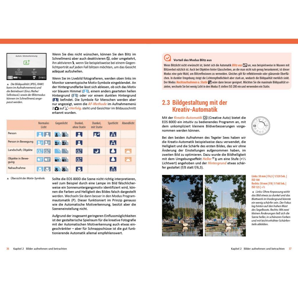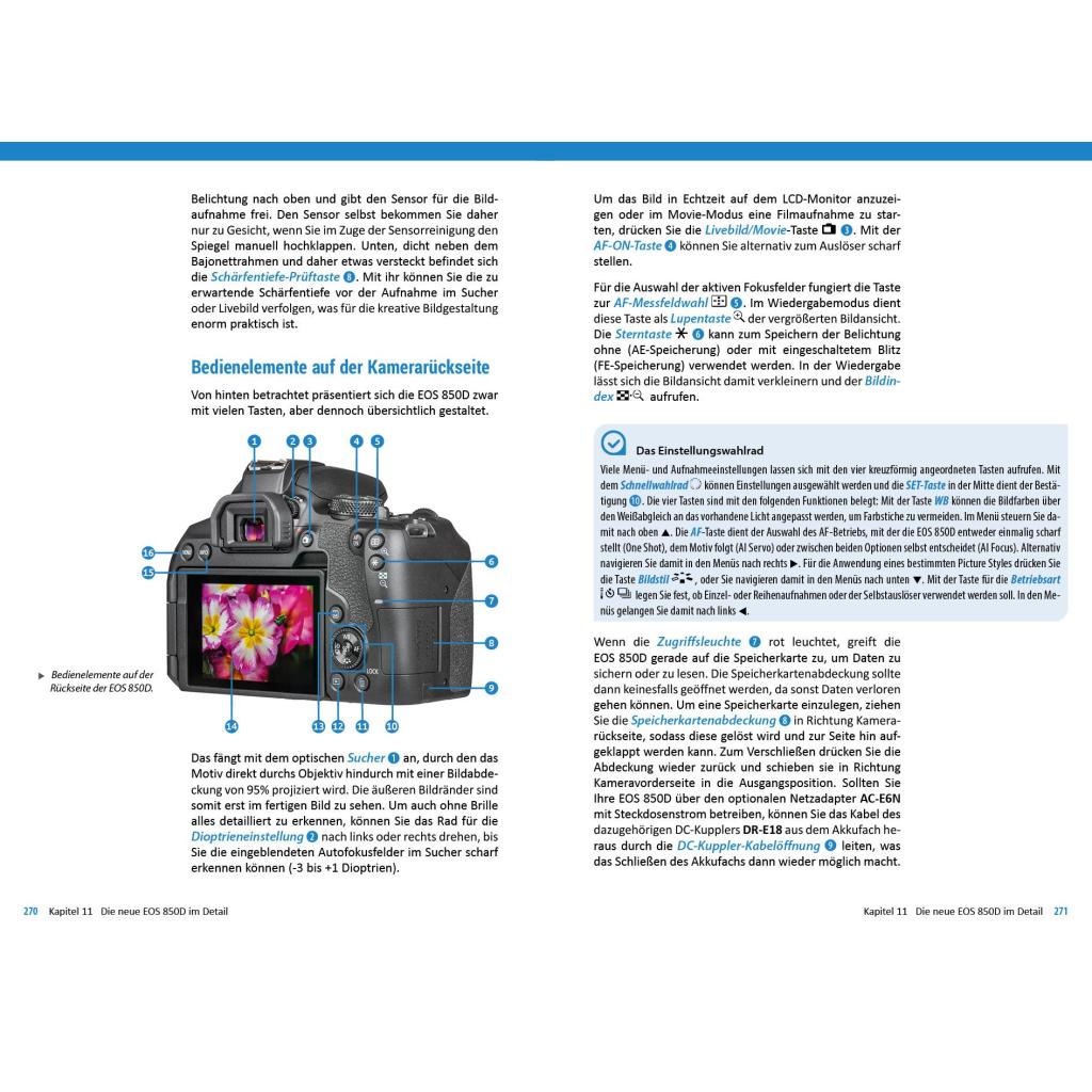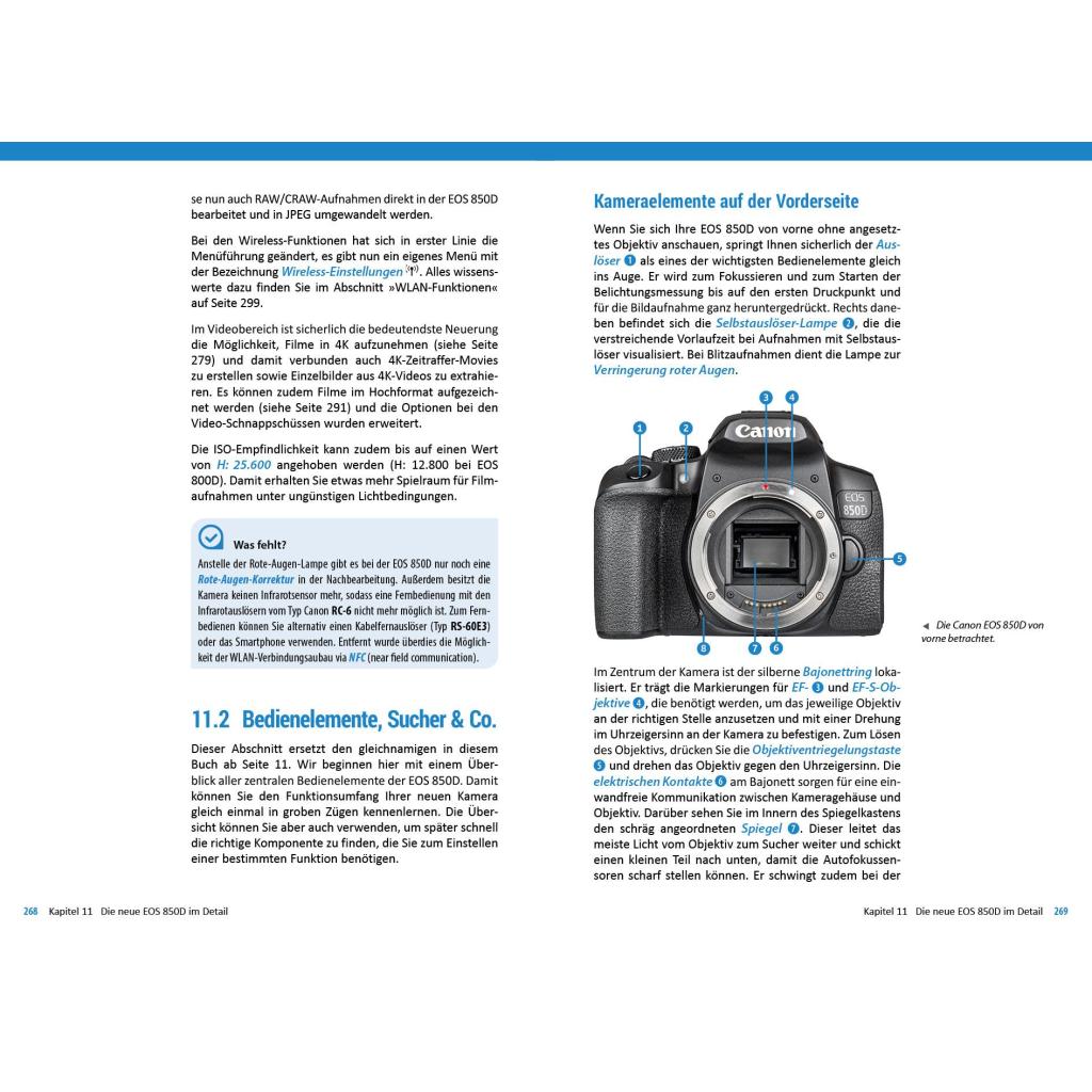 Mit der EOS 800D/850D hat Canon sein beliebtes Kamerasegment mit APS-C-Sensor in wesentlichen Bereichen verbessert und differenziert. Die Autoren Kyra und Christian Sänger stellen die EOS 800D/850D mit all ihren Möglichkeiten , Programmen und Funktionen ausführlich vor und teilen ihr Wissen sowie ihre Erfahrung mit Ihnen. Anschauliche Anleitungen, praktische Beispiele und viele hilfreiche Tipps der beiden Profifotografen helfen Ihnen dabei, die EOS 800D/850D schnell und sicher zu bedienen . So können Sie sich ganz auf Ihre Bild- und Videomotive konzentrieren. Ob Porträt, Landschaft, Architektur oder Makro: Schnappen Sie sich Ihre Kamera und legen Sie los! Autofokus, Belichtung und spezielle Funktionen im Detail Profitipps zu Programmen, Einstellungen, Effekten u.v.m. Aus dem Inhalt: Das ist neu an der EOS 800D/850D Sofort starten mit den Automatiken Bildgestaltung mit Kreativ-Automatik Eigene Bildstile dank Kreativfilter Fotos zeigen, schützen und löschen Profiprogramme für jede Situation Spontan reagieren mit der Programmautomatik Manuelle Belichtungskontrolle Den Fokuspunkt gezielt setzen Actionfotos mit Motivverfolgung Livebild ohne / mit Touch-Auslösung Selbstporträts aufnehmen Bildfarben an die Situation anpassen Kreatives Blitzen leicht umgesetzt Meisterhaft filmen mit der Kamera Bildbearbeitung in der 800D/850D Die WLAN-Funktionen nutzen