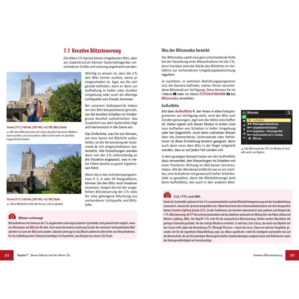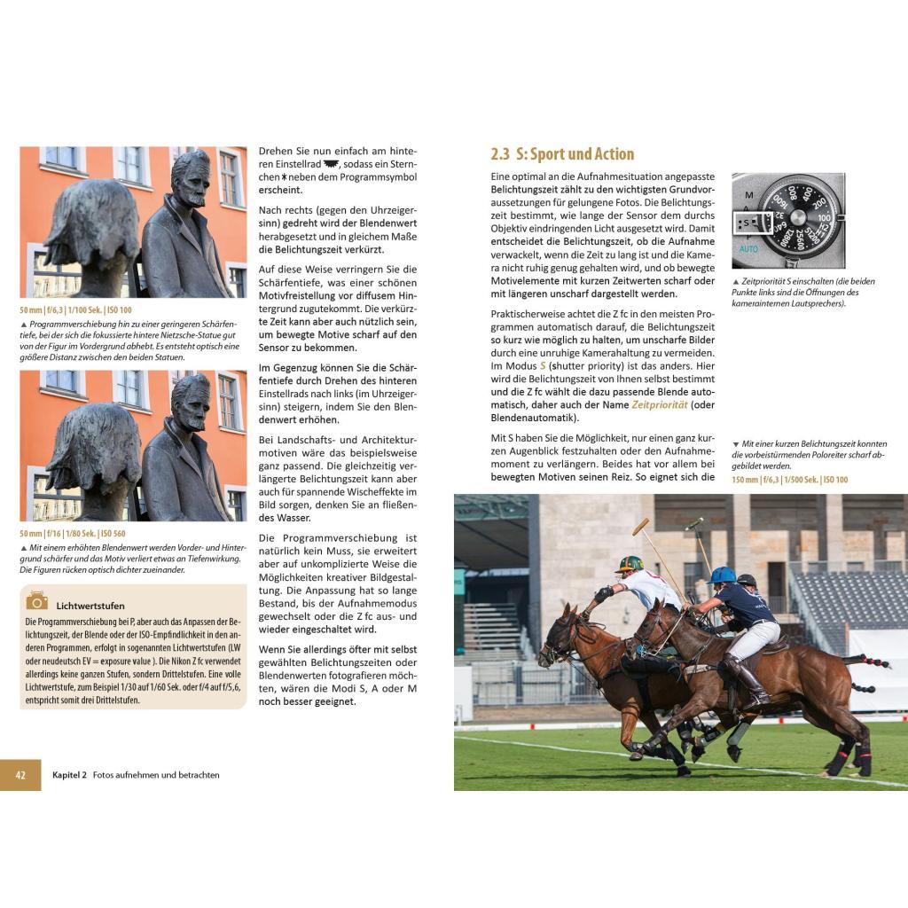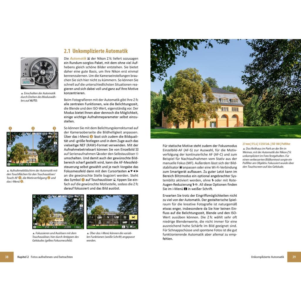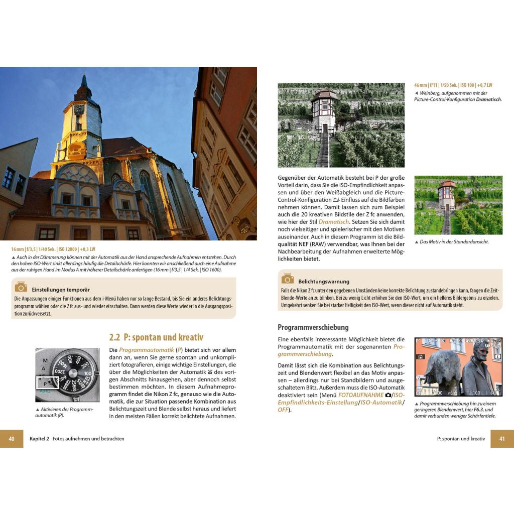 Die Z fc ist der legendären Nikon FM2 nachempfunden und damit erste Wahl für Retro- und Designfans . Und auch die inneren Werte der Z fc, z. B. der verbesserte Autofokus, überzeugen Amateure ebenso wie ambitionierte Fotografen. Lernen Sie mithilfe dieses Buchs die umfassende Technik der spannenden Kamera kennen und erfahren Sie, wie Sie ihr volles Potenzial ausschöpfen . Die Autoren stellen Ihnen detailliert alle Bedienelemente, Funktionen und Programme vor. Sie zeigen gut nachvollziehbar und mit konkreten Beispielen , wie Sie mit Licht, Kontrasten, Schärfe und Farben umgehen und selbst in schwierigen Situationen perfekte Bild und Videoergebnisse erhalten. Freuen Sie sich auf fundiertes Know-how und viele praktische Tipps der Profis! Erfahrenen Fotografen über die Schulter geschaut Autofokus, Belichtung und spezielle Funktionen im Detail Menu- und Einstellungstipps für den sofortigen Einsatz Aus dem Inhalt: Die Z fc stellt sich vor Alle Bedienelemente kennenlernen Fotos aufnehmen und wiedergeben Spannende Effekte und professionelle Programme für jede Situation Fantasievolle Gestaltungsoptionen Intervallbilder und Zeitrafferfilme Immer exakt scharf stellen Perfekt belichten inklusive Doppel- und Mehrfachbelichtungen Natürliche Farben umsetzen Aufnahmen mit Bildstilen veredeln Kontraste optimieren und HDR Kreative Videos gestalten Mehr Tempo mit Reihenaufnahmen Systemblitz und entfesseltes Blitzen Kamerainterne Bildbearbeitung WLAN, Menükompass und Software