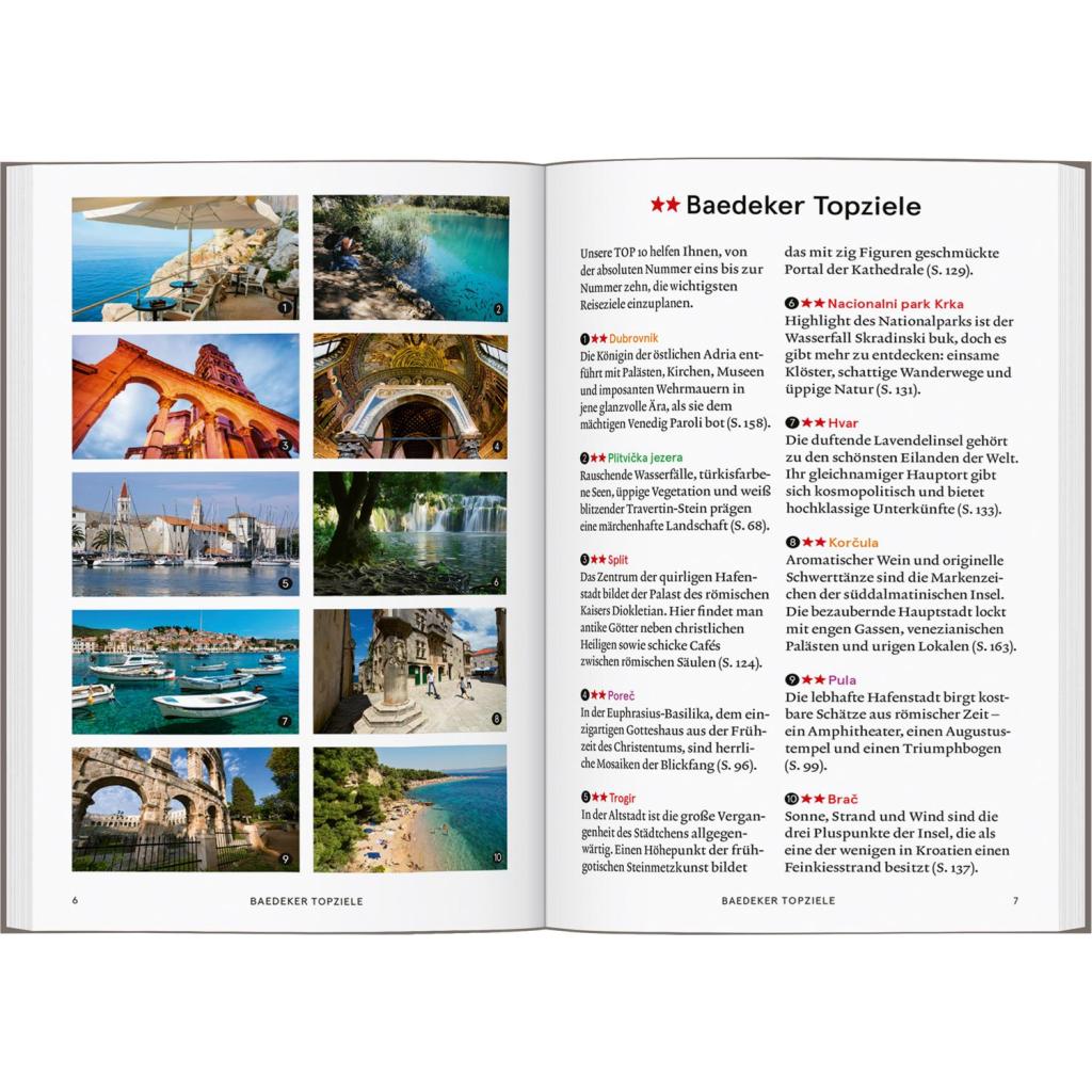 Unzählige Buchten und ein grünes Hinterland - Kroatien erleben mit dem Baedeker SMART Reiseführer Über 1.000 Inseln, kleine Strände und Buchten, gebirgiges Hinterland und geschichtsträchtige Städte - wer Kroatien bereist, erlebt die perfekte Mischung aus Bergen, Meer und Stadt. Wir nehmen Sie mit in die Kornaten und den Krka Nationalpark sowie zu den Plitwitzer Seen. Besonders sehenswert sind die Küstenstädte Split , Dubrovnik , Zadar und Sibenik. Auf Ihrer Kroatien-Reise sollten Sie sich auch an Inselhüpfen probieren: von Pag über Hvar bis zu Brac mit Kroatiens berühmtestem Strand, dem Goldenen Horn. In handlichem Taschenformat und exklusiver Spiralbindung präsentiert der Baedeker SMART alle wichtigen Kroatien- Sehenswürdigkeiten in 5 Kapiteln inklusive: Gliederung der Sehenswürdigkeiten in die drei Rubriken »TOP 10«, »Nicht verpassen!« und »Nach Lust und Laune!« Inspirierende Spaziergänge und Touren durch die schönsten Gebiete Kroatiens und attraktive Ausflugsziele Tipps für genussvolle »kleine Pausen« in Cafés, Restaurants oder Bars und »magische Momente« in Kroatien Spannende Hintergrundinfos zur Geschichte von Kroatien und den Sehenswürdigkeiten , zu Landschaft und Klima, Wirtschaft und Kultur sowie den Menschen und deren Alltag Servicekapitel mit »praktischen Informationen« zum Alltag und für die Urlaubsplanung Schnelle Orientierung mit Atlas im Buch und herausnehmbarer Faltkarte Das "Land an der Adria" entspannt entdecken mit einem Reiseführer wie eine beste Freundin Als wenn er genau wüsste, was Ihnen gefällt - planen Sie morgens schnell und einfach den Tag mit dem Baedeker SMART Kroatien Reiseführer . Verbringen Sie doch einen Tag in Istrien und erleben Sie die beeindruckende Altstadt von Porec. Entspannung verspricht die idyllische Hafenstadt Pula , wohingegen Rovinj mit seiner lebendigen Stadtgeschichte, einer Vielzahl an Kirchen und zauberhafter Kunst kulturelle Einblicke bietet. Oder zieht es Sie in die Natur? Dann sollten Sie hinein in das grüne Binnenland. Der Nationalpark Plitvicka Jezera beeindruckt mit spektakulären Natur-Highlights wie dem Veliki Slap, Kroatiens höchstem Wasserfall oder den Plitvitzer Seen , die man auch perfekt auf einer Bootsfahrt erkunden kann. Neben allen klassischen Sehenswürdigkeiten halten wir Tipps für ganz besondere Urlaubstage in Kroatien für Sie bereit. Erleben Sie beispielsweise den von Alfred Hitchcock gekürten "schönsten Sonnenuntergang der Welt", wenn die Sonne jeden Abend hinter der Inselkette von Zadar langsam verschwindet. Mit unseren inspirierenden Ideen sorgen wir für eine entspannte Urlaubsplanung und machen Ihren Kroatien-Urlaub unvergesslich. Dieser Reiseführer ist perfekt für Sie geeignet, wenn Sie ... ... besondere Orte kennenlernen möchten und auf der Suche nach außergewöhnlichen Momenten sind ... modernes Layout und stilvolles Design lieben ... Kroatien durch die Tipps unserer Experten entdecken möchten ... ein handliches Reise- Heft für unterwegs und zuhause haben wollen ... sich einen durchdachten Reiseführer mit einem hohen Maß an Urlaubsinspiration wünschen