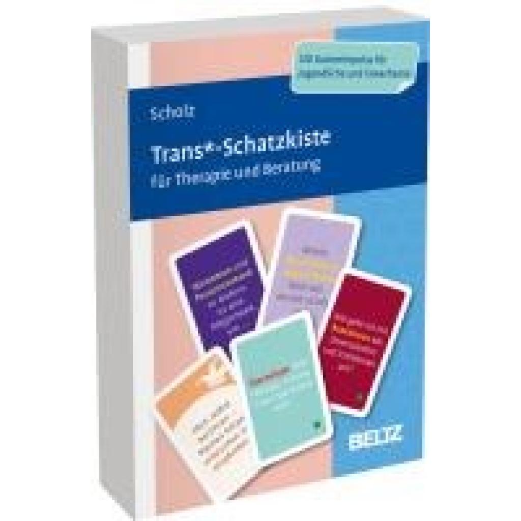 | Keyword: | Akzeptanz; Coming-out; Diskriminierung; Geschlechtsidentität; Psychologische Beratung; Psychotherapie; Satzanfänge; Selbstakzeptanz; Therapiekarten; Trans*; Transition |