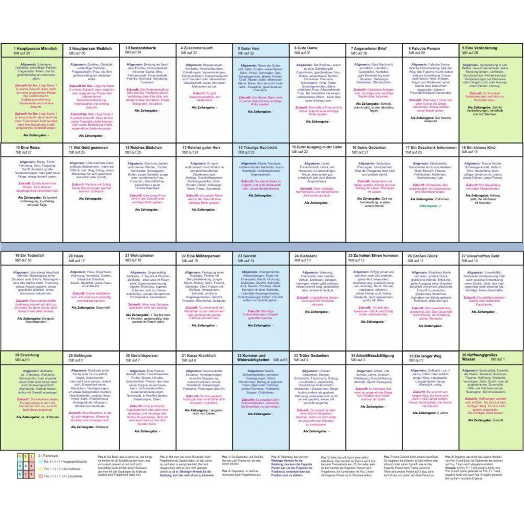 Deutungshilfe zum Kartenlegen lernen nach Kipper und der großen Tafel 9x4