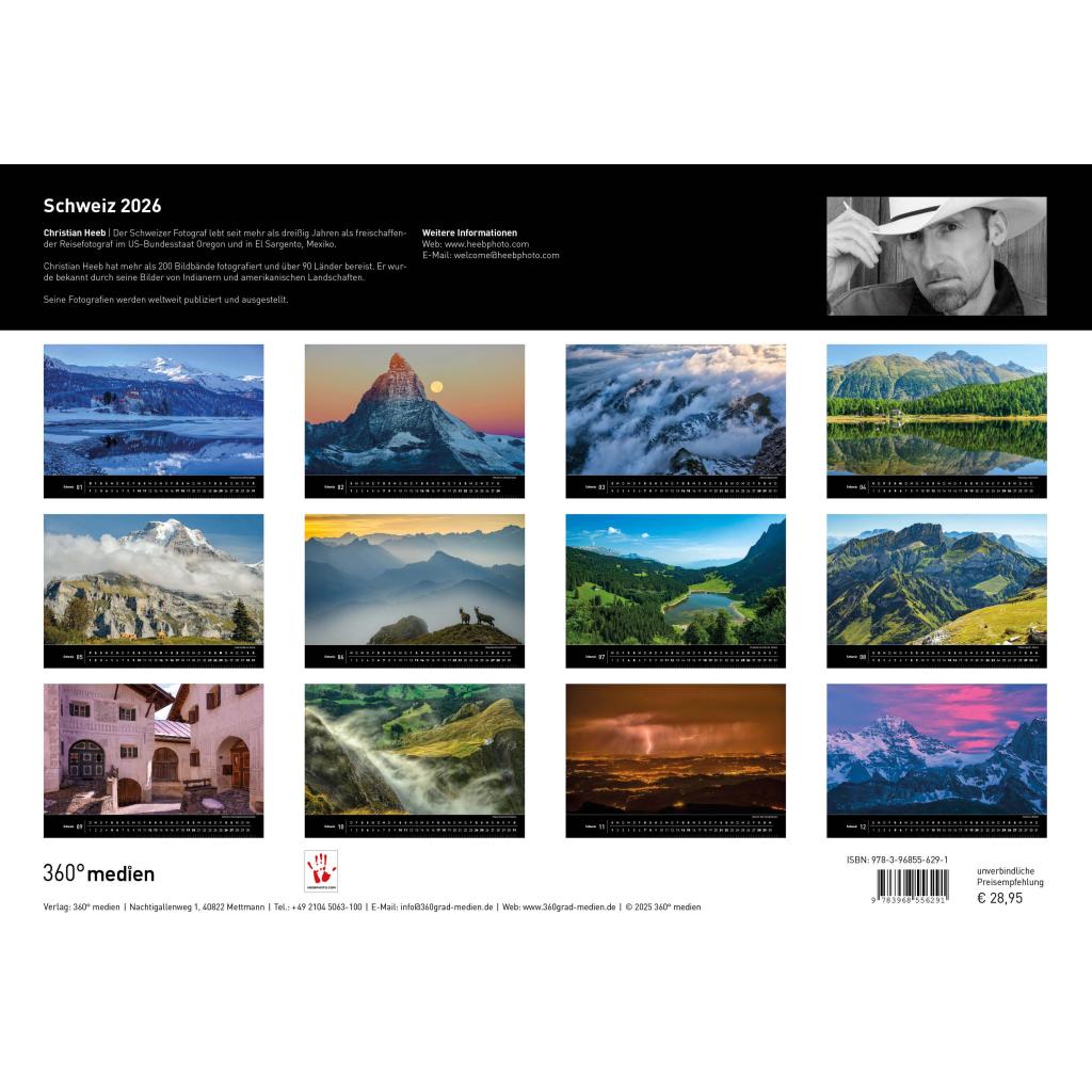 | Keyword: | Appenzell; Berge; Bergsee; Bergsteigen; Fotokalender Schweiz; Graubünden; Lichtspiel; Luzern; Matterhorn; Naturaufnahmen; Naturschauspiel; Reisekalender; Schweiz Wandkalender; Sehnsuchtsorte; St. Gallen; Suisse 2026; Traumkalender; Wandern |