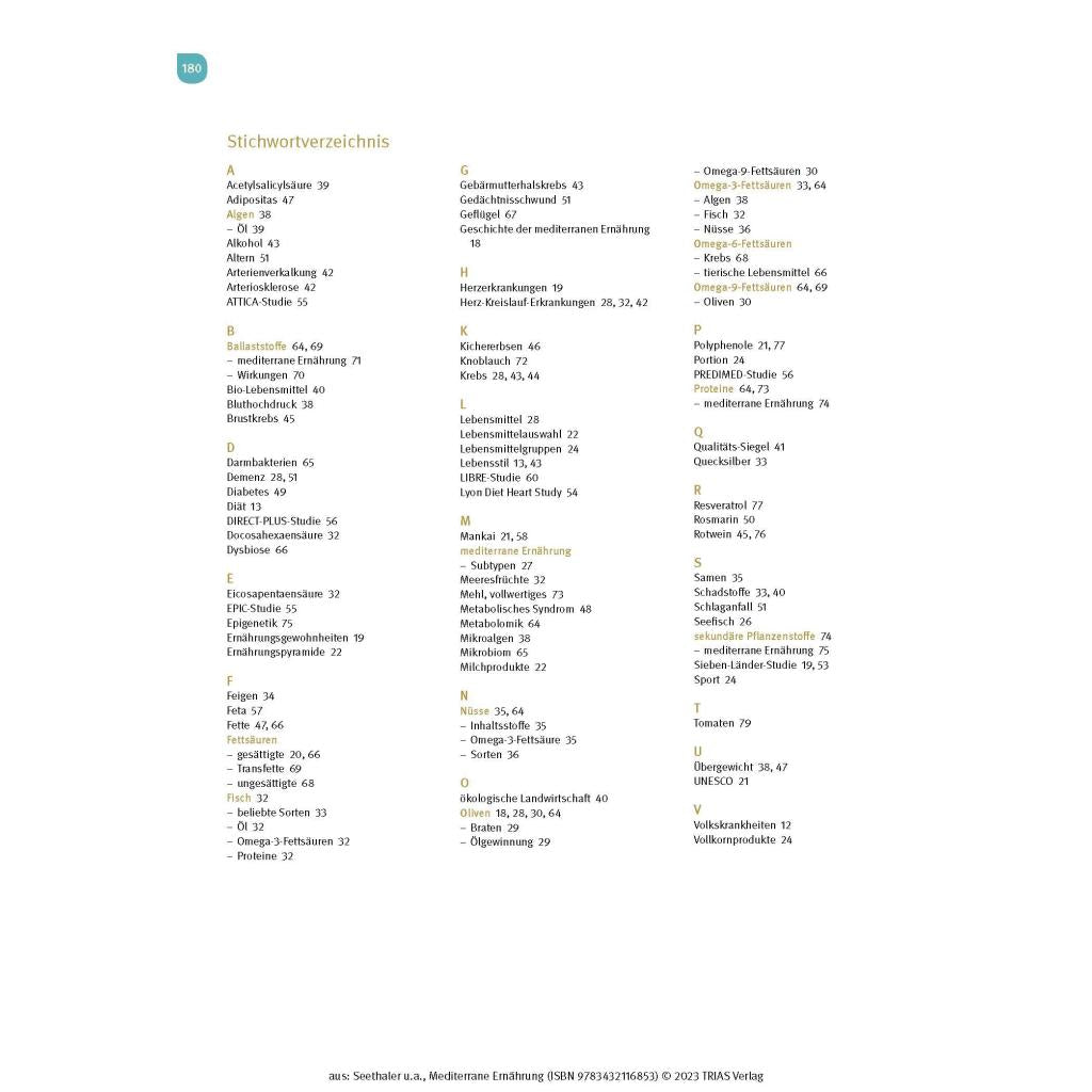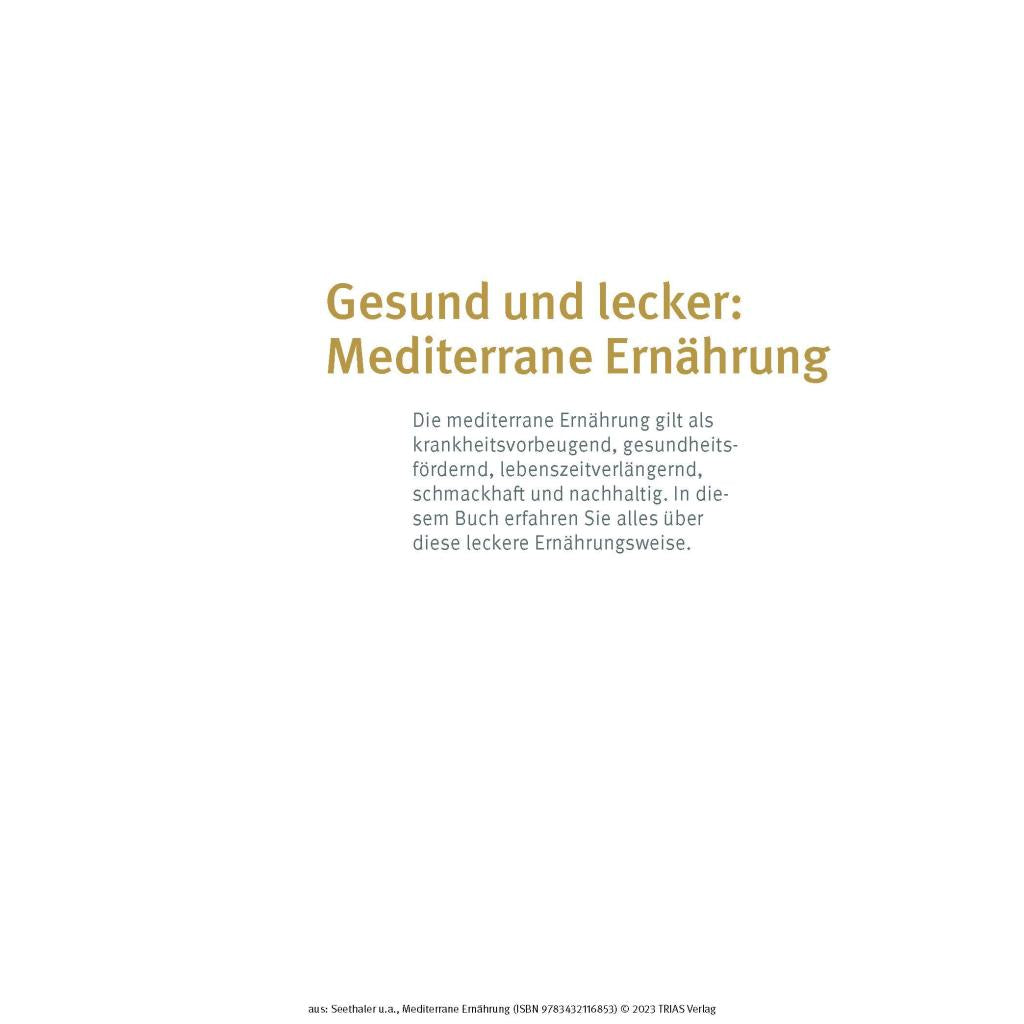 | Keyword: | Arterienverkalkung; Arteriosklerose; Herzinfarkt; Krebs; Low Carb; Mediterrane Diät; Mediterrane Ernährung; Mittelmeerdiät; Olivenöl; mediterrane Kost; ungesättigte Fettsäuren |